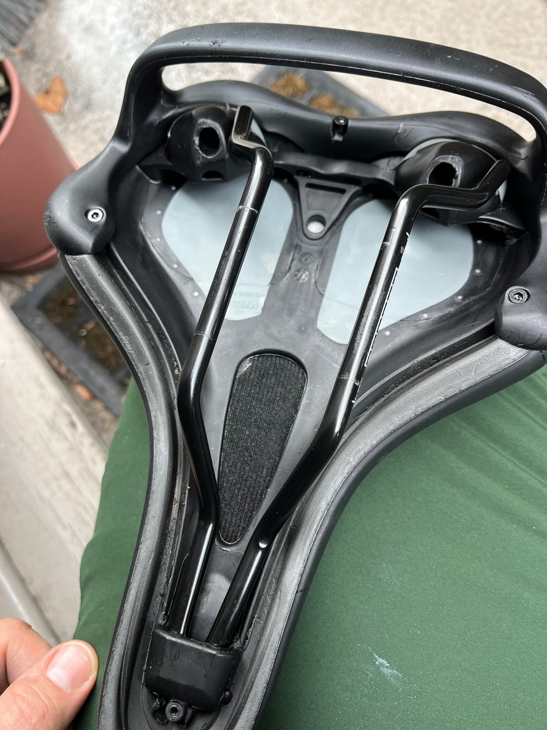 Was lifting my cargo bike from the seat and it came undone. I’ve taken the seat off the post and am trying to figure out how to get the metal wishbone back into its holes.
