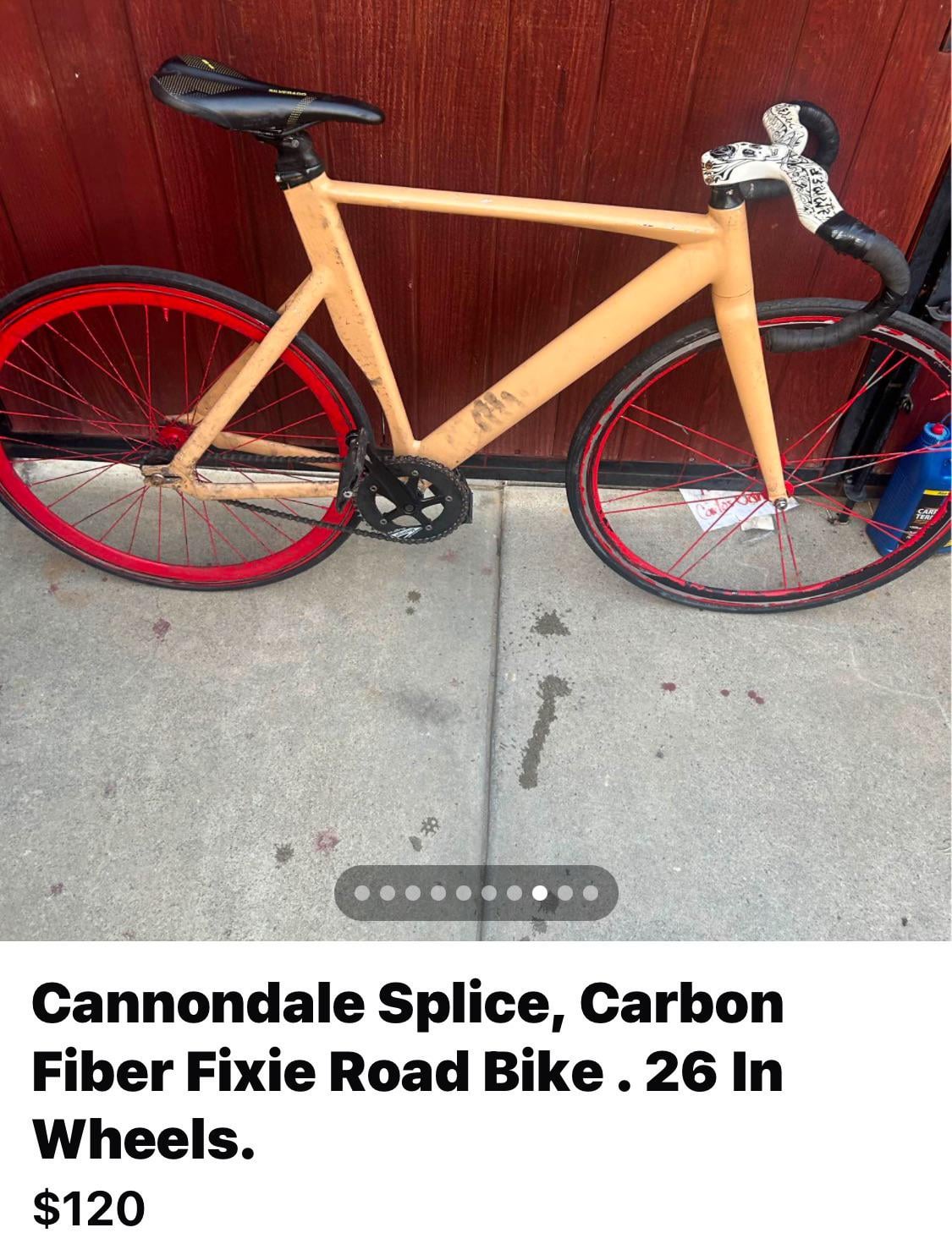 2. Pretty sure it’s Aluminum not carbon. Probably not Cannondale either, the Cdale *slice* exists but this isn’t one. Also appears to be in horrible shape. See if they’ll sell it for $40