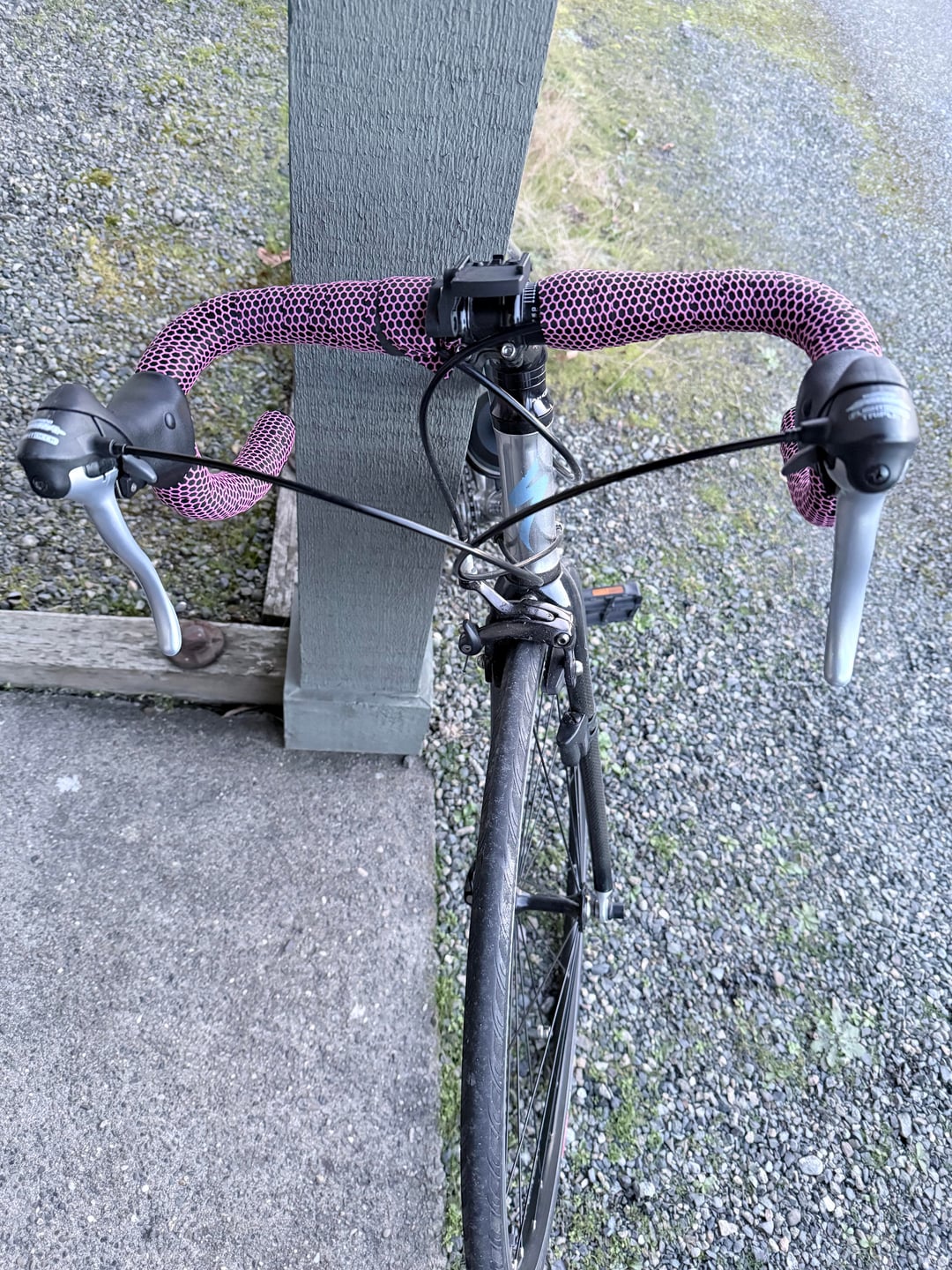 I loved riding my bike as a kid but as I got older, busier, and out of shape, the idea of biking seemed exhausting and unrealistic for me. Well, about two months ago, my husband decided he wanted to start riding his bike after keeping a decade in storage – he had so much fun that it made me think maybe I want to try, too! Without much research as to different types of bikes, I snatched up a road bike from FB marketplace for a great deal and have enjoyed dinking around the neighborhood with it. Lately I’ve been going farther with it around my town and I feel like a kid again! I have a lot of training to do and am still quite out of shape, but I am actually looking forward to keeping up with the practice and getting better. This is a hobby that is going to stick around for awhile. Now that I know this, I want to get a few little accessories that would help with biking around town and feeling safe. I’m attaching pictures of my handles because I truly don’t know what will fit or what the options are! I definitely want a bell, and I would really like a mirror to be able to see if cars are coming behind me. Based on what I’ve got, any suggestions for accessories?