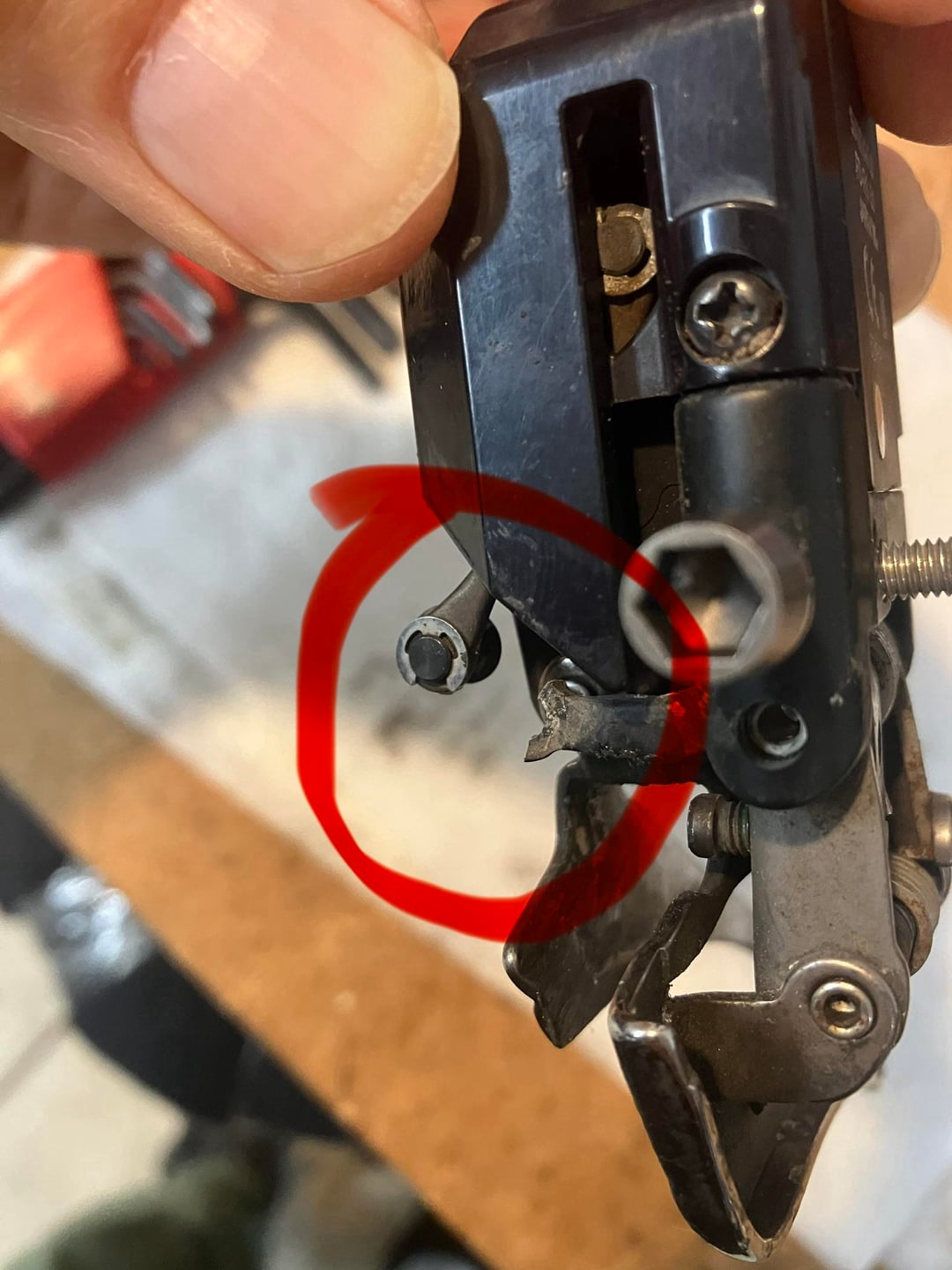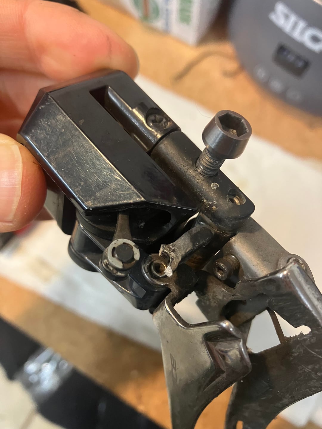 Hi everyone, I have a Shimano Di2 9150 FD that had this happen. I’m sure it’s fixable with some skilled surgery. But where can parts be found? by Jello-the-first Bicycling Bike Bike Repair Biking Cycling Repair