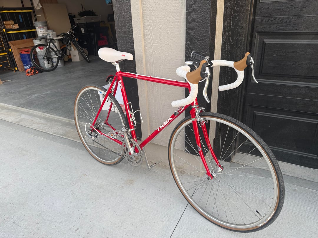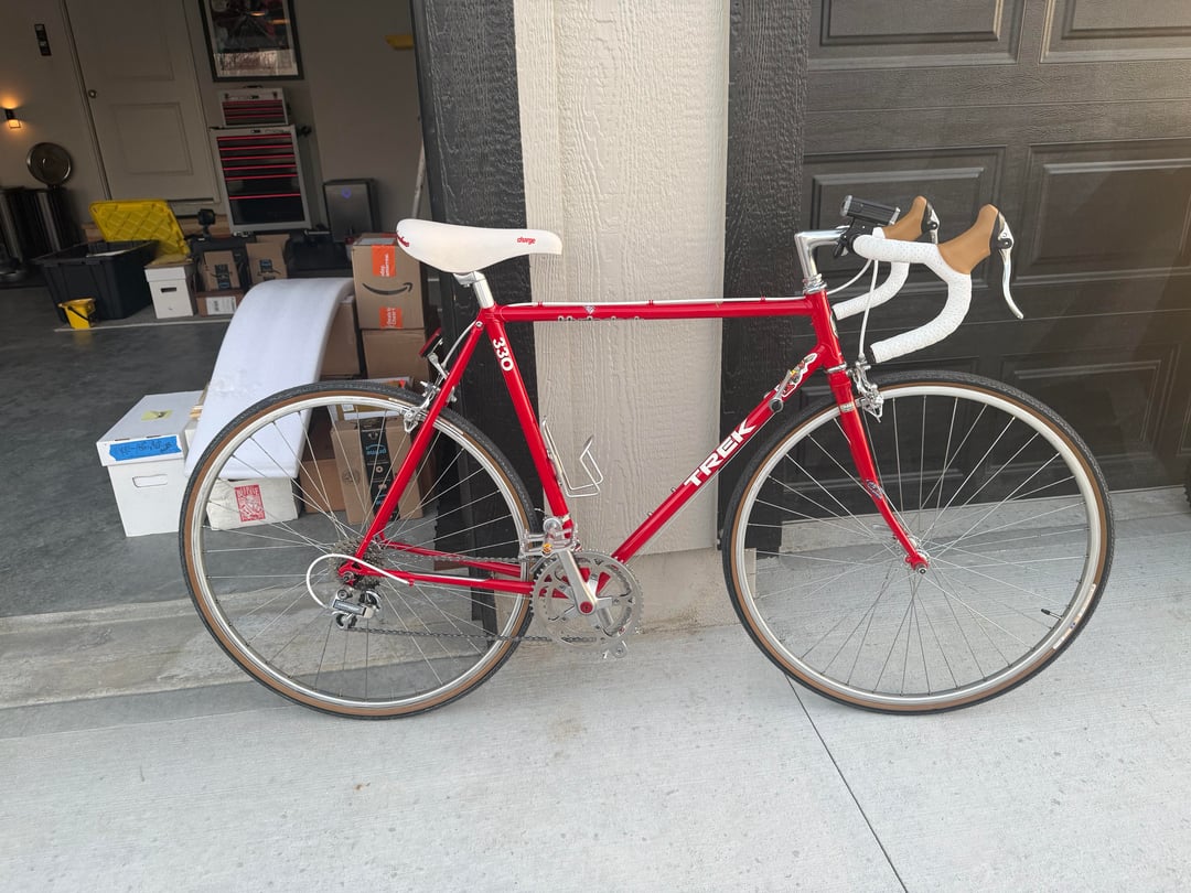 Rescued this guy from trash pickup a few houses down from where I live. Needed new bearings front to back on everything, new chain, break levers, cables, tubes, tires and tape. I splurged on a fresh saddle, seat post and pedals. Was definitely a pricey restoration but I’m really happy with how well it cleaned up.