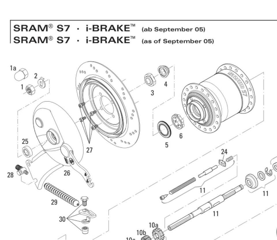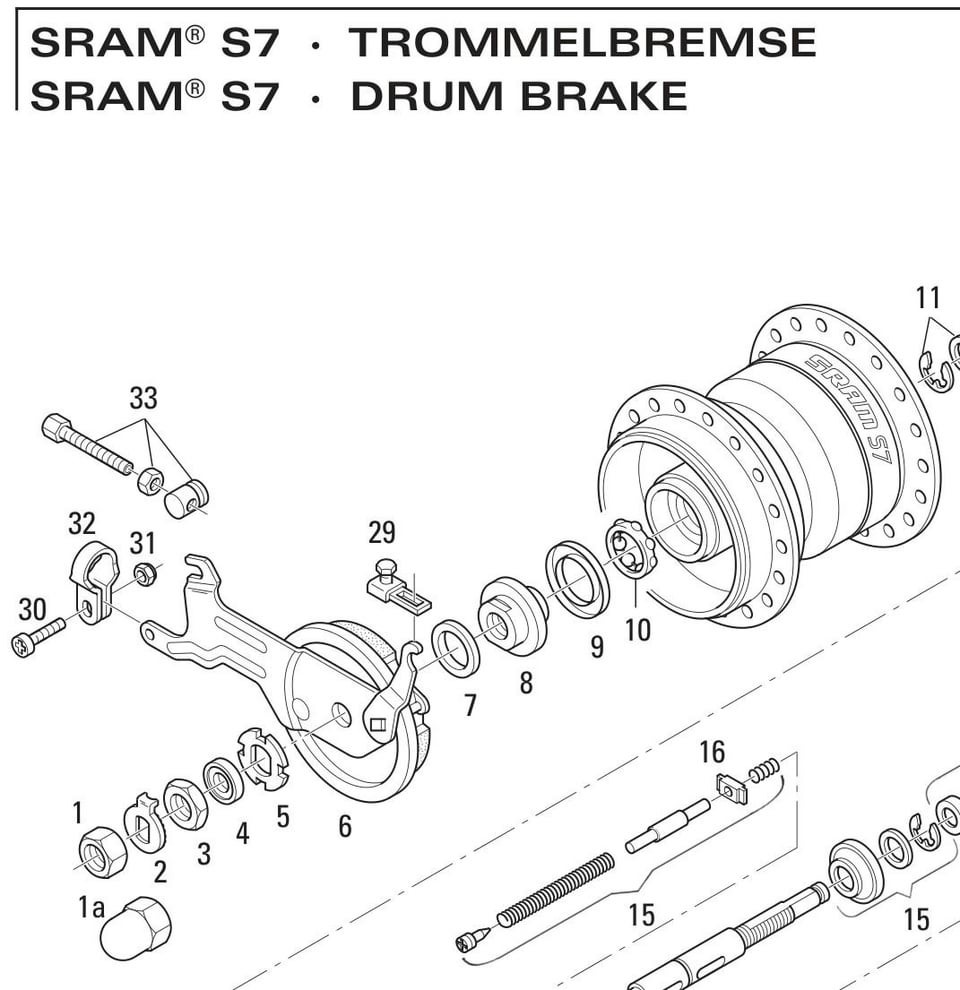 Einmal googlen: [https://www.retrobikefranken.de/de/sram-spectro-s7-sachs-getriebenabe-trommelbremse.html](https://www.retrobikefranken.de/de/sram-spectro-s7-sachs-getriebenabe-trommelbremse.html)