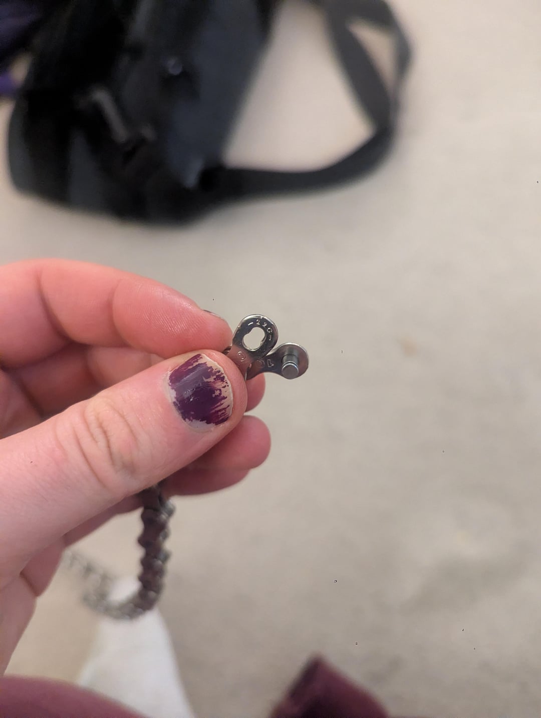 That’s not snapped by the looks of it. It looks like a powerlink that wasn’t correctly set before you rode.