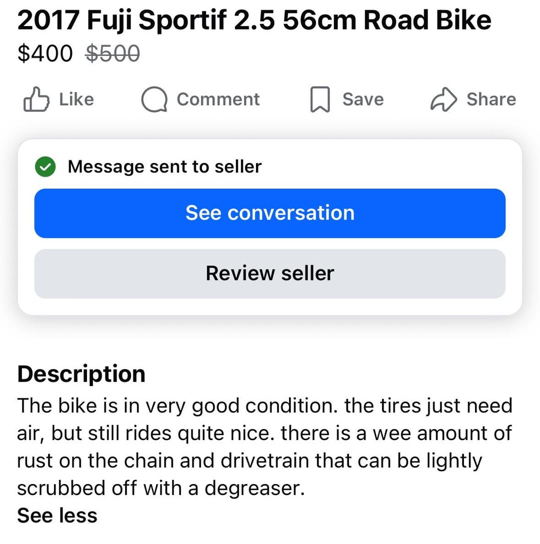 kbrosnan on February 19, 2026 7:25 pm That doesn’t seem like a good price for a 2×7 Tourney bike that sold for [600 USD new](https://99spokes.com/bikes/fuji/2017/sportif-2.5)