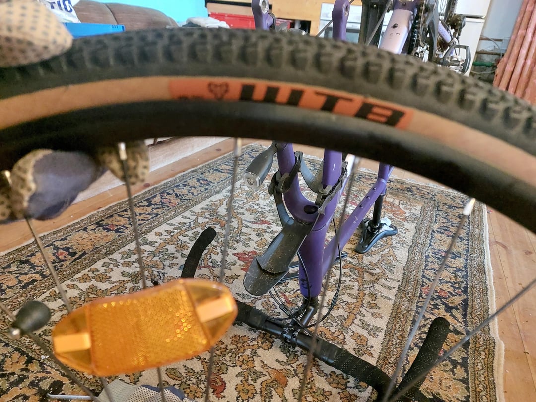 Mein Reifen hatte einen Platten, den habe ich zwar behoben, aber das Wiederaufziehen des Mantels war – wie immer – ein riesiger Hassle. Ich habe das schon einmal gemacht, aber diesmal bekomme ich ihn einfach nicht richtig eingesetzt.