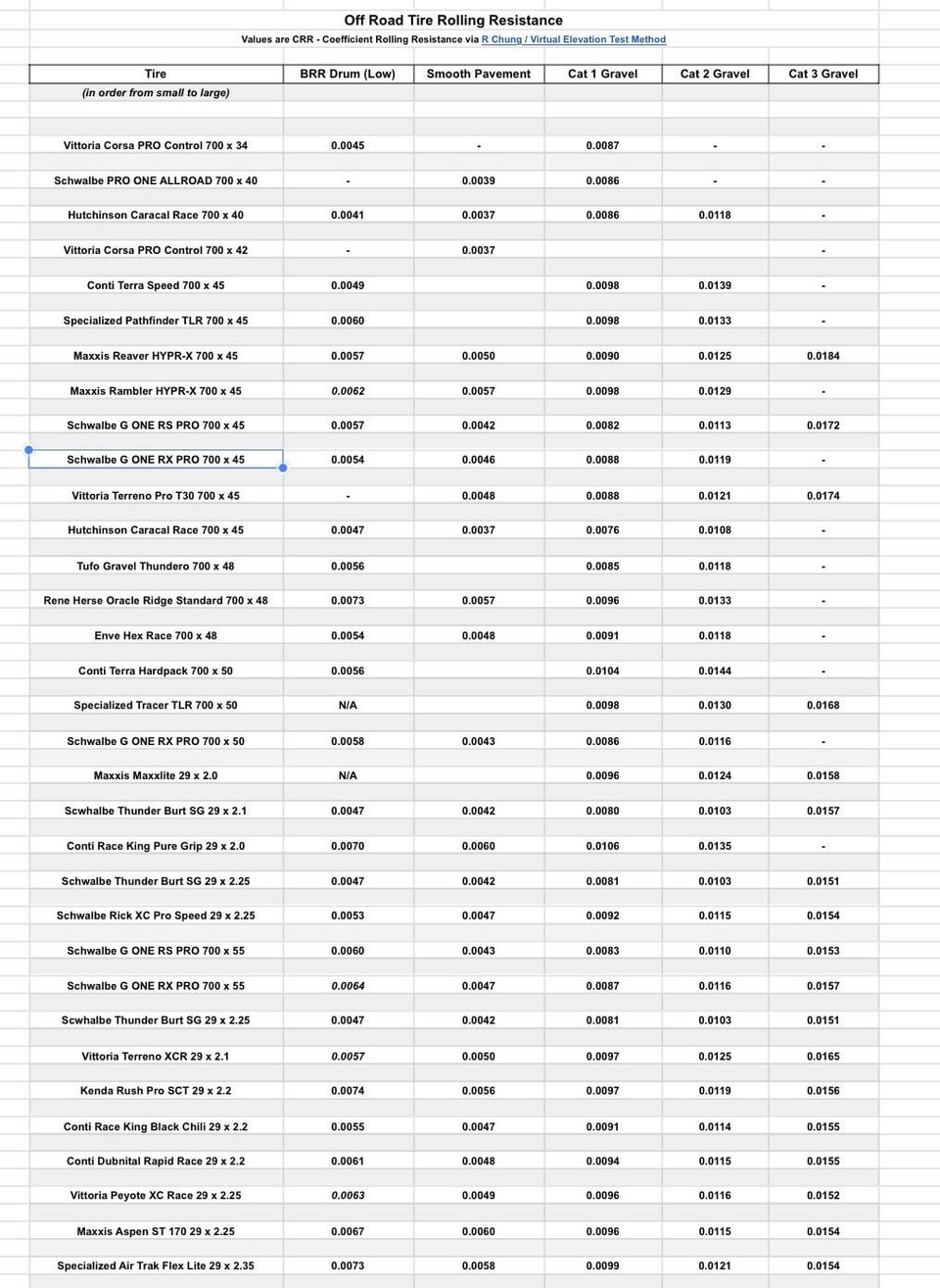 Everyone wants to know…what pressure am I using? Obviously, larger tires will require lower pressure than smaller ones to get the best speed and handling in general…especially off road. The Wolf Tooth Advanced calculator is very good in my usage for gravel and mtb tires. The Rough Gravel setting seems to get quite close to best pressure for not only rolling efficiency (yes, even on gravel that’s not super rough) but also comfort and handling. I will start with that based on the measured tire size, go ride some, recheck pressure once the tire warms up, then reasess the setting based on how the tire is riding. If it feels obviously harsh, go down 1 psi…. If it feels squirmy or I am smacking the rim on hard hits, I will go up 1 psi, maybe 2 in that situation. Often I end up sticking quite close to what the calculator says initially but it isn't written in stone. Rolling efficiency is actually almost identical (reference some testing I posted spring 2025 for this graphically) across a bigger span of tire pressures off road than most realize, which means it is quite easy to get the pressure where the tire will be fastest…the rest is fine tuning to rider preference. Even though I’m testing, I am also enjoying being out there so take the extra steps to see how the tire performs best. Ultimately there is no magic “best” pressure… it is up to rider preference with no real speed penalty unless you really mess it up one way or another, and that is a big reason I am explaining this in such detail. It’s not to justify my results, it’s to encourage folks to keep an open mind about how they set their tires and get the best ride possible. All the Smooth Pavement testing I do is with the tires set to the PSI I would use for riding on average pavement, so in practice about 5-7 psi higher than I would use for off road riding.