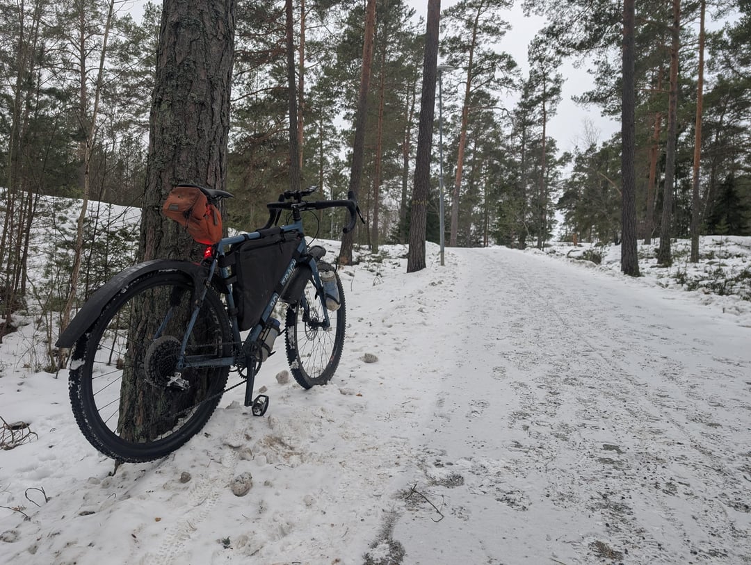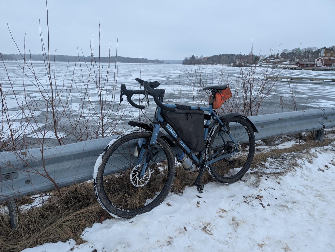 Winter has been pretty tough here in Stockholm, Sweden. Hardly any sun, pretty persistent snow on the ground since new years, and some bitterly cold temps. Today was the first day above 0C in a long time so I went out on a nice 100km lap through Vaxholm and the ferry accessed archipelago. Road sections were clear but most of the bike paths were snow covered. Would have been an easy road bike lap in summer but it was a proper gravel bike adventure in winter. Glad to get out for a long ride for the first time of the year.