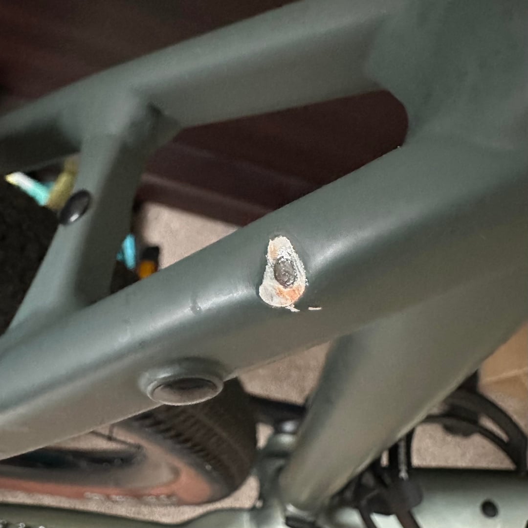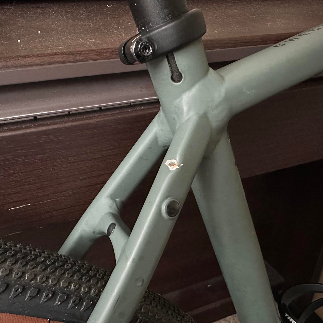 1. Ugh that sucks, but it should be fine to ride. Just put a sticker over it and try not look at it or think about it. If it’s eating at you, maybe someone could fill it and repaint the frame, but i don’t think it would be worth it.