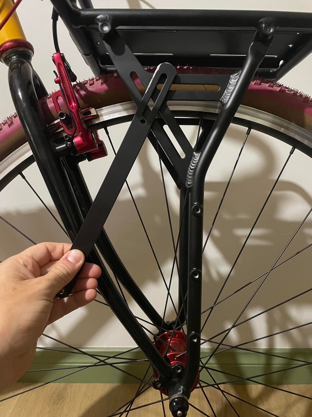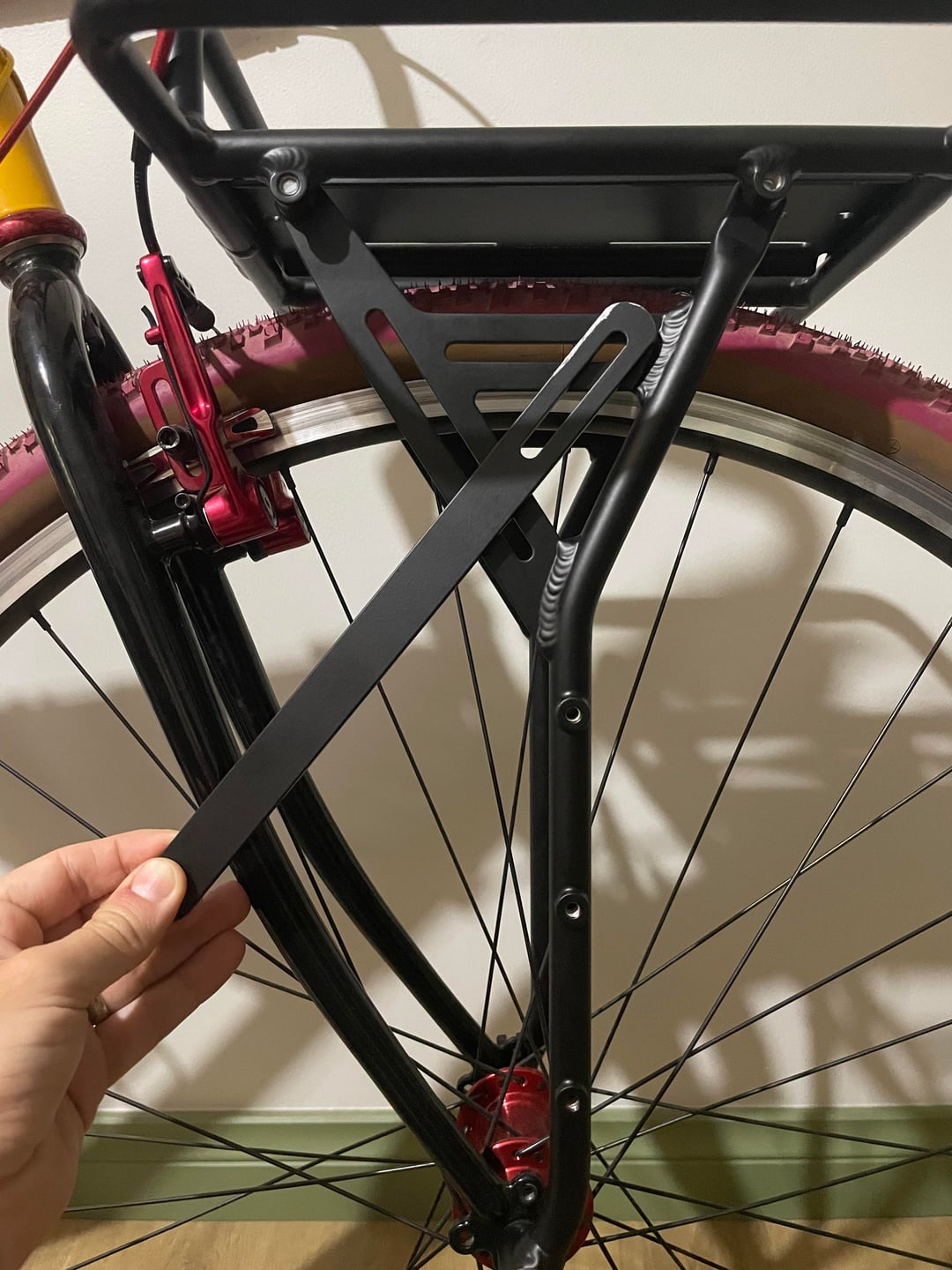 I needed to order the Old Man Mountain extenders and then cut them down to fit on the single anchor point on my front fork.