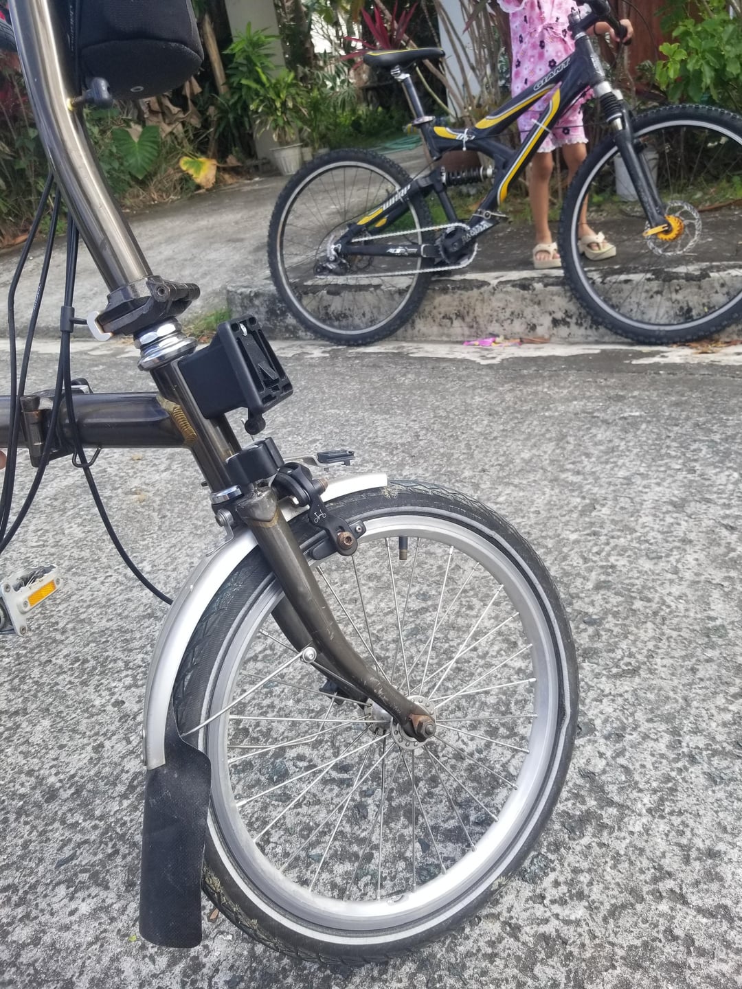 Tubes are cheap and Brompton wheels are annoying to take off. You need a new tyre, if I were you I would replace the tube while I was at it just for the sake of convenience.