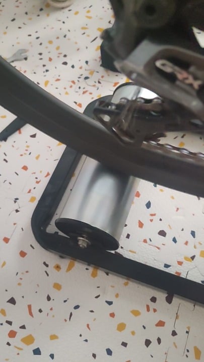 I got this old Kettler Sprint-master Indoor Roller, and one of the rolls is loose and started oscillating. They're not known for being quiet, but with my weight on it, it now sounds like a pneumatic hammer and I can't ride it even with headphones.
