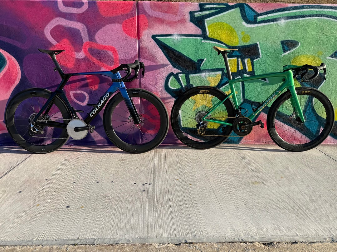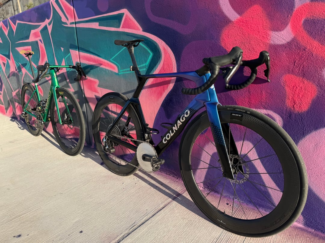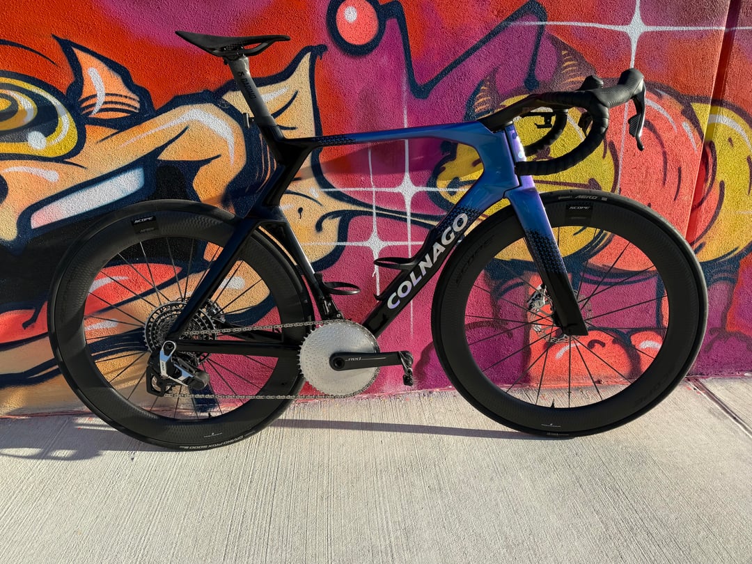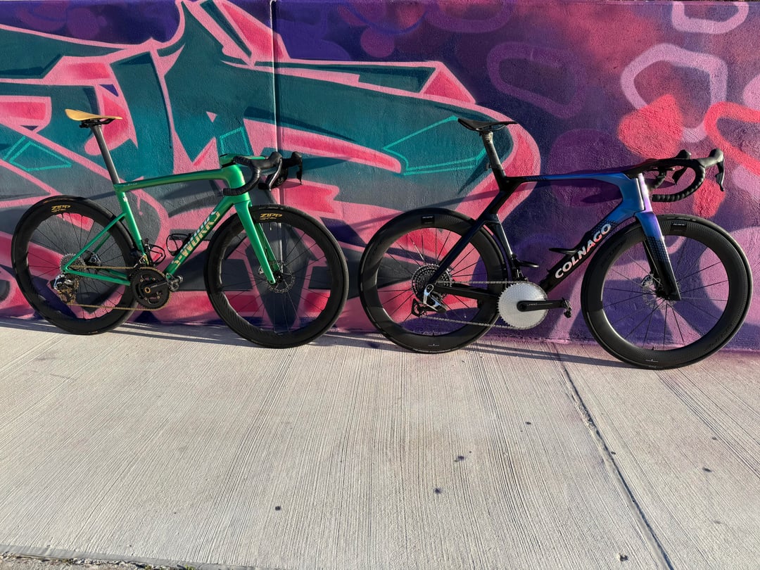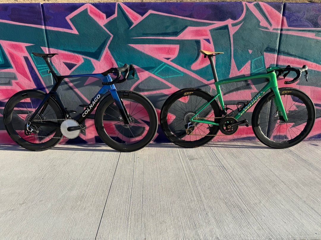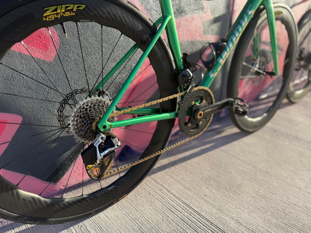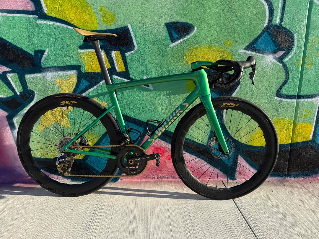 SL8 Details – Red E1 2x with 10/36 cassette, Carbon-Ti 50/37 Chainrings with Gold Bolts, ZIPP 454 NSW's with ZR1 SL Hubs, Conti Archetype 30 rear, Conti Aero 111 29 front, Polymer Sculpture Bars in 36/120, Wireless Blips, Galfer Rotors, Alpitude 0 offset Seatpost, Gold Berk Lupina Short 150 Seat, Arundel Mandible Cages, Favero Assioma Duo Pedals, BBInfinite Ceramic BB, Gold KMC XFlat Chain, Gold SLF Motion OSPW and Lockrings, Gold Kogel Preload Ring, Supacaz Bartape, Gold Chaser Brake Adapters, Frames and Gear Computer Mount, Better Bolts Ti-Bolts Kit, Gold Au Naturale Bar Ends