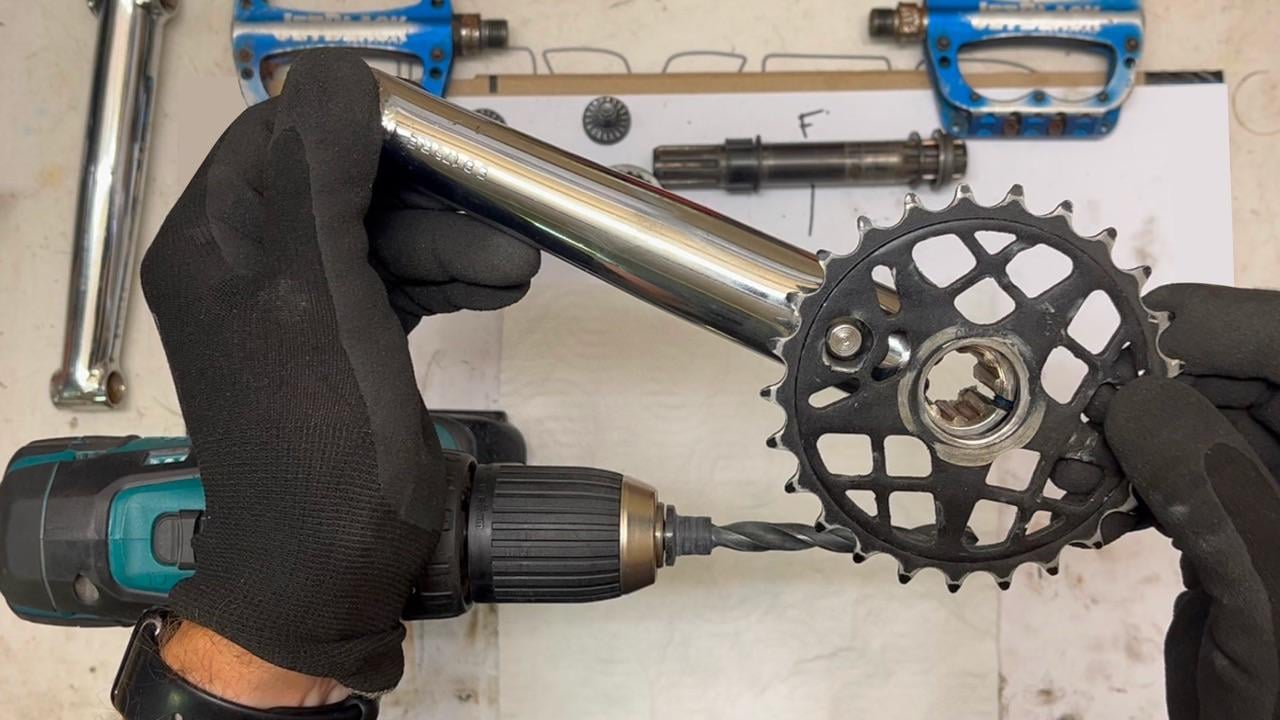 To get the crank drive working properly, I needed to make an expander to space out the gap between the crank knob and the chainring (which is very worn). Vid here: https://youtu.be/7d8x7qB7mCk