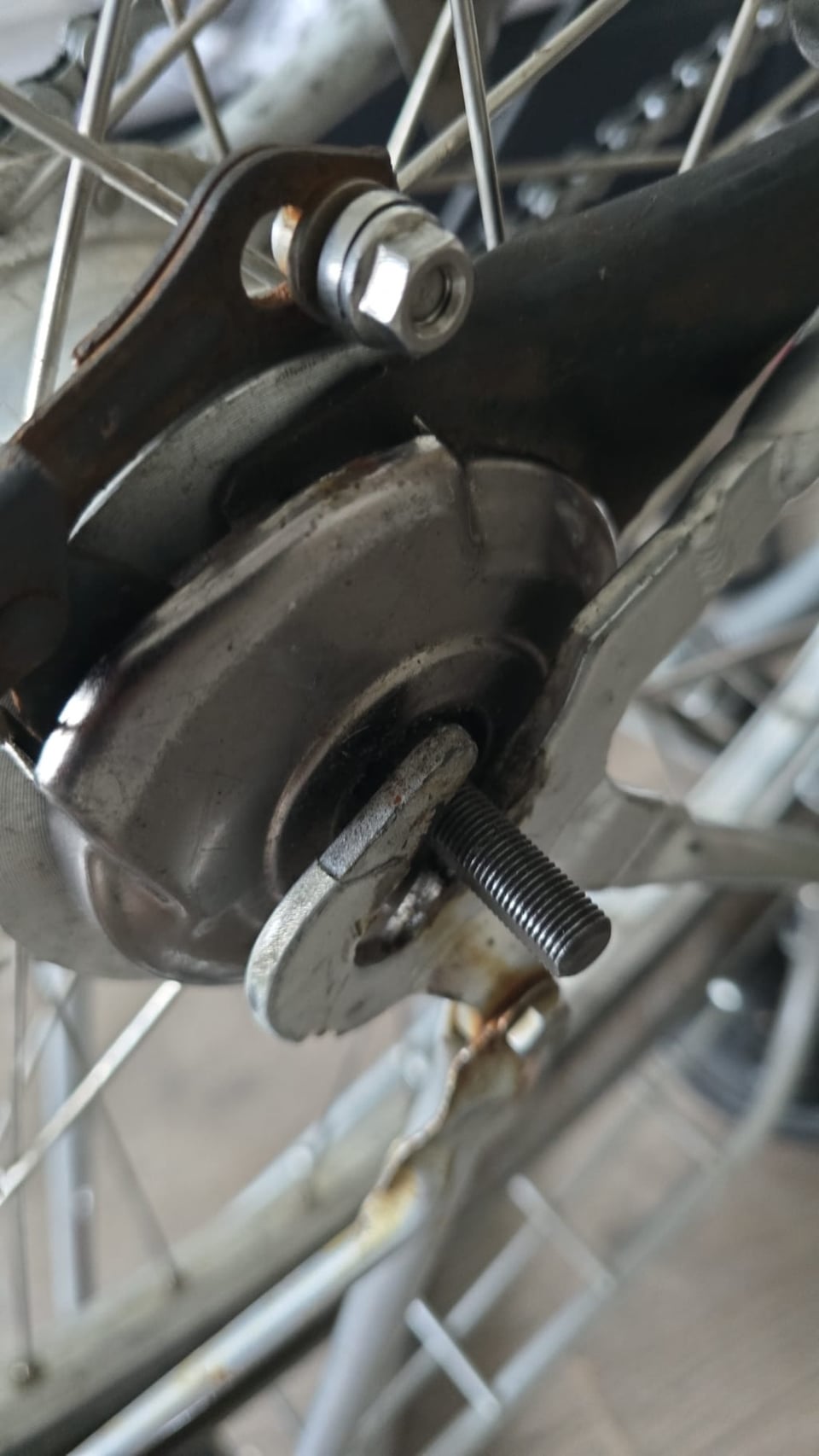 Note: bike is upside down in the photos, and I removed the chain tensioners . The wheel also won’t slide in with the chain with them on.