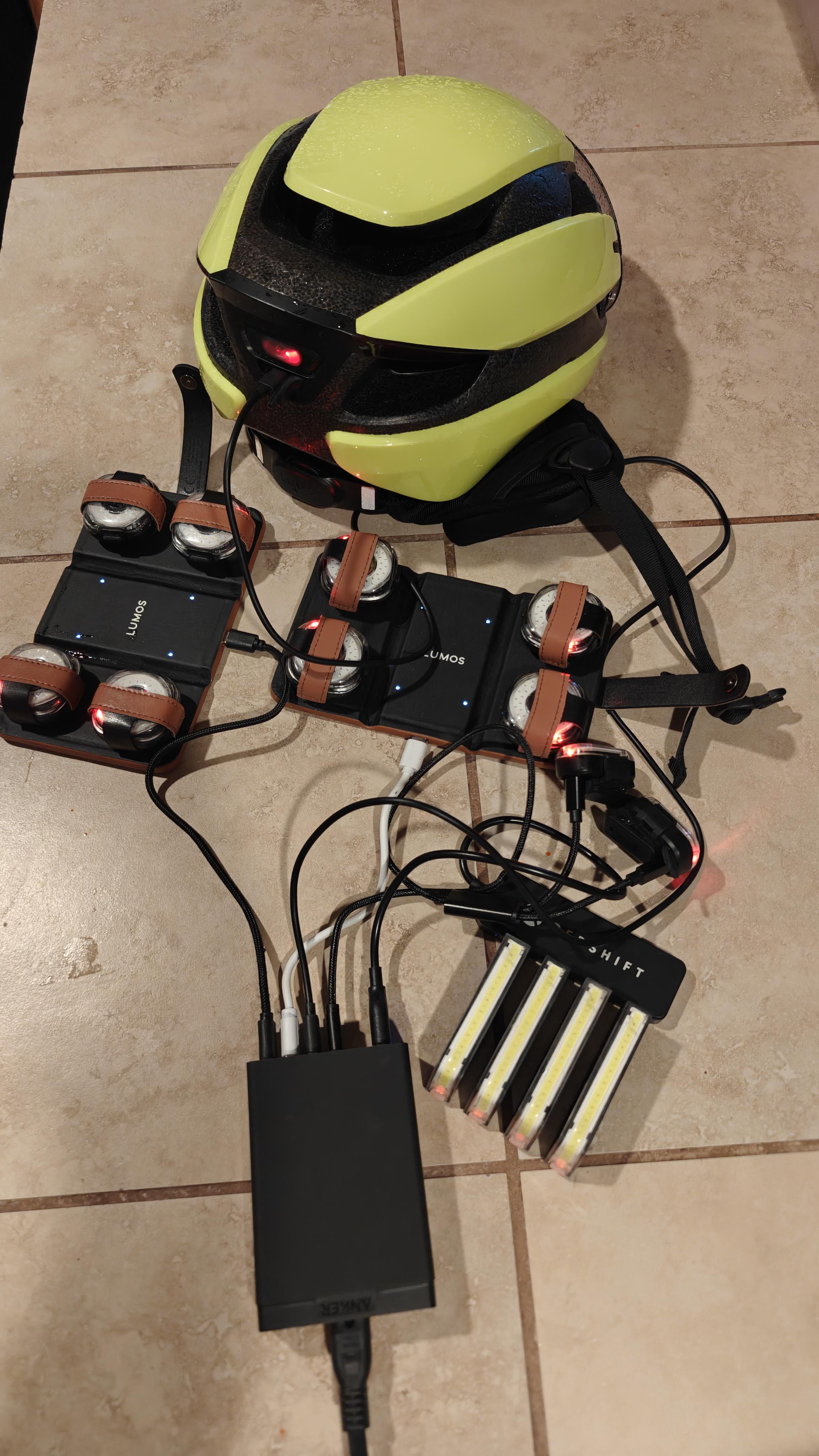 I charge my lights once a week. I'm still looking for a bin or crate that I could setup as a charging station. Winter hasn't been very cold, so I can charge my bike in the garage, but eventually I'll have to add that to my charging station and I think I'll include boot/glove dryers too.