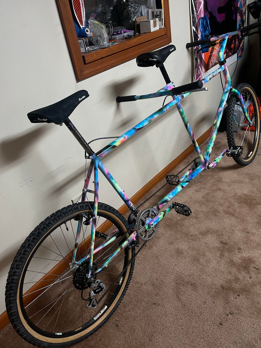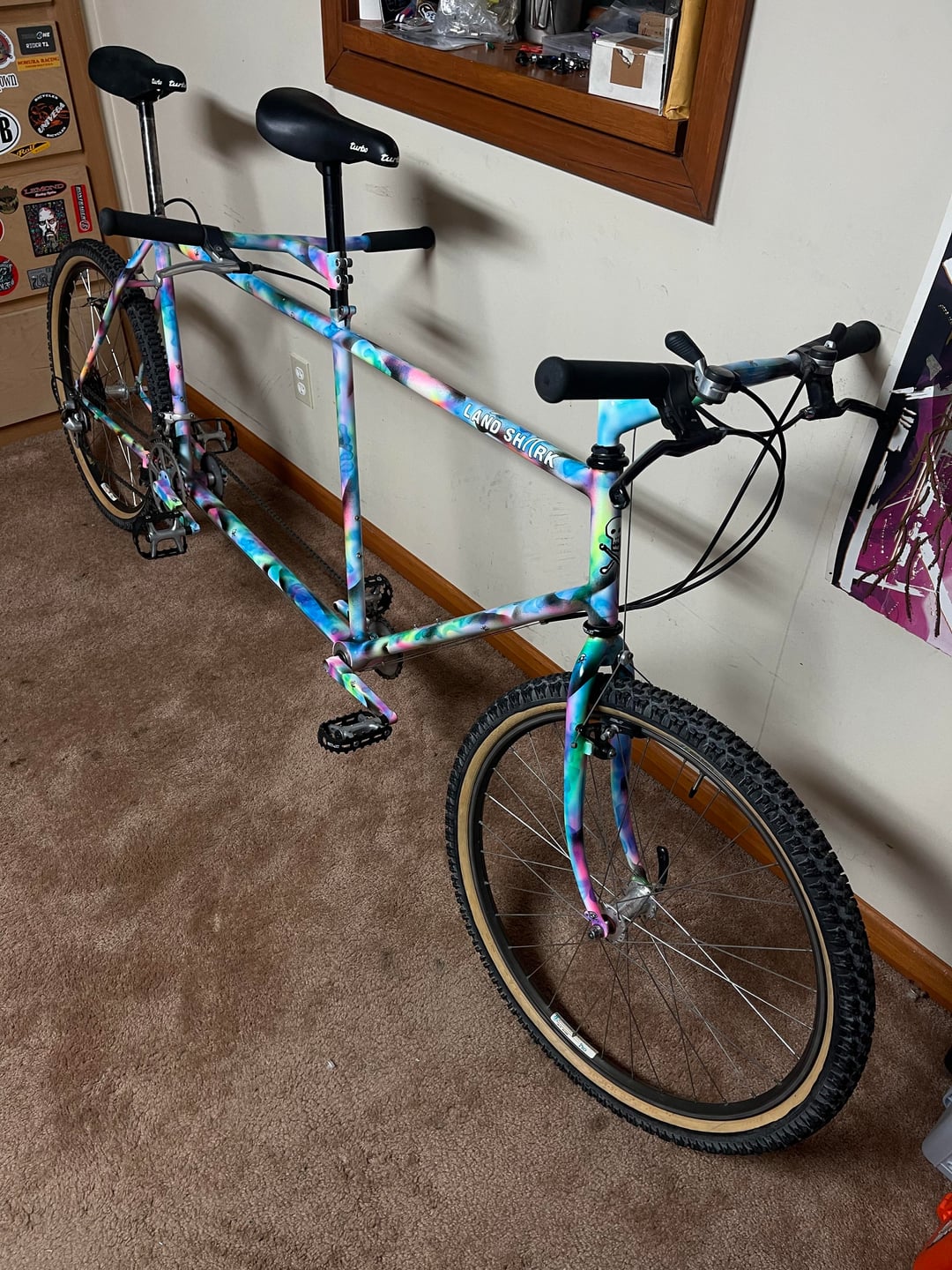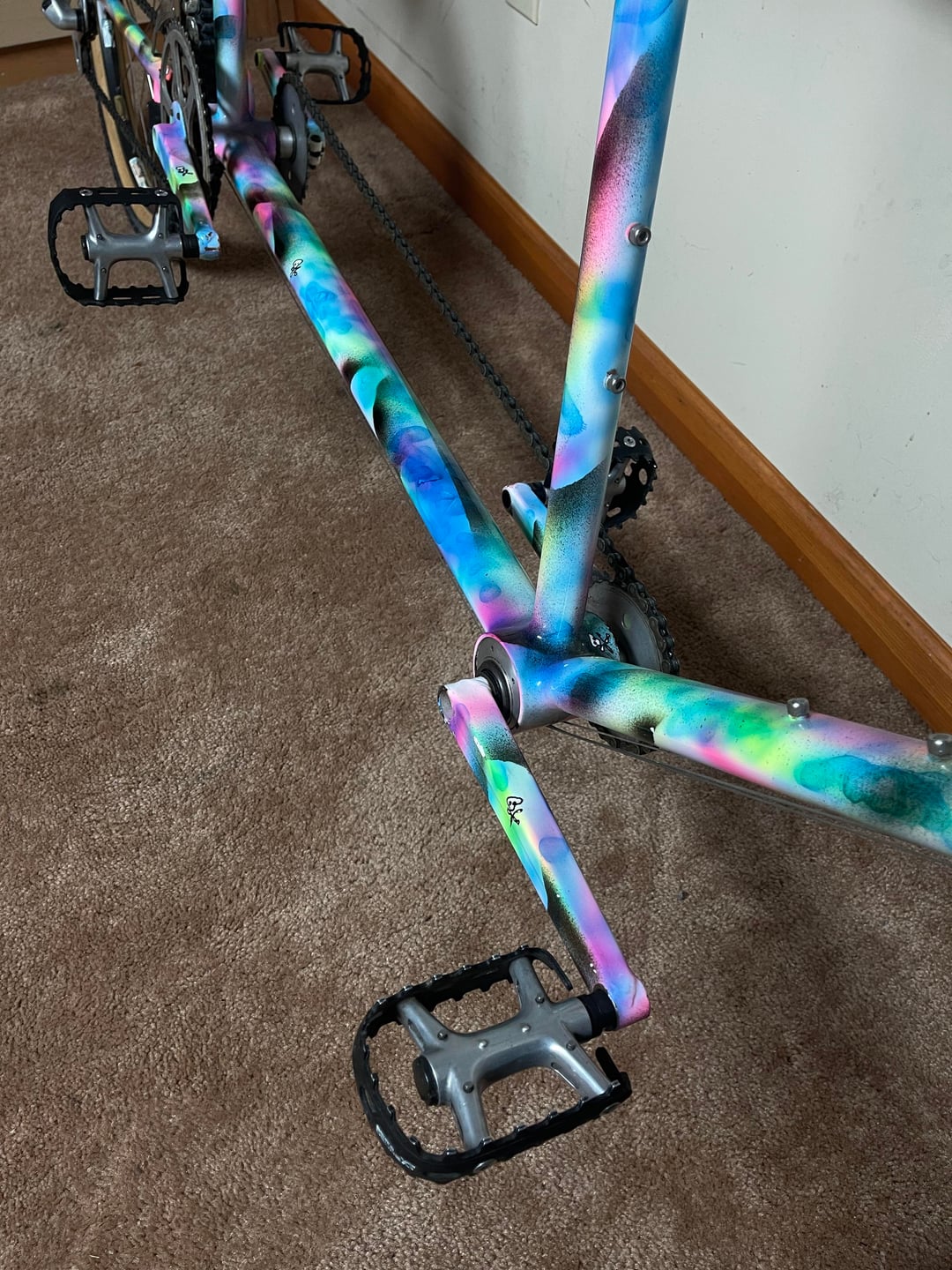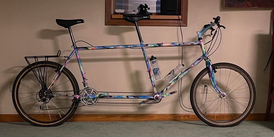 I bought this Landshark tandem from MonkeyWrench and found out that this bike was made for John’s brother and his wife and that John’s brother painted it.