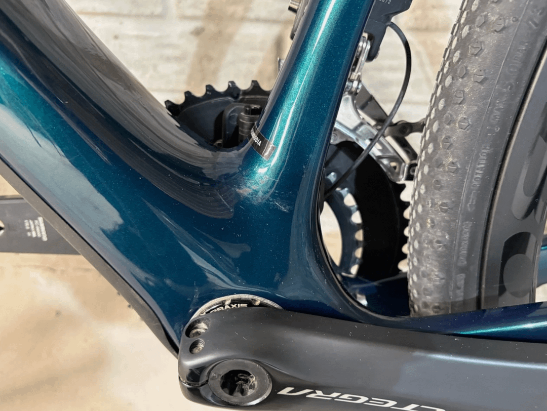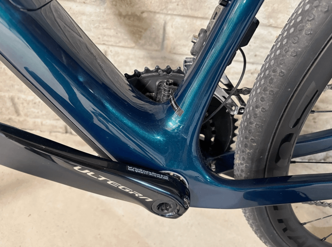 Note: Frame has a few scratches inside the chain stays and above the crank on the left side. The frame is carbon with an IsoSpeed decoupler and internal storage