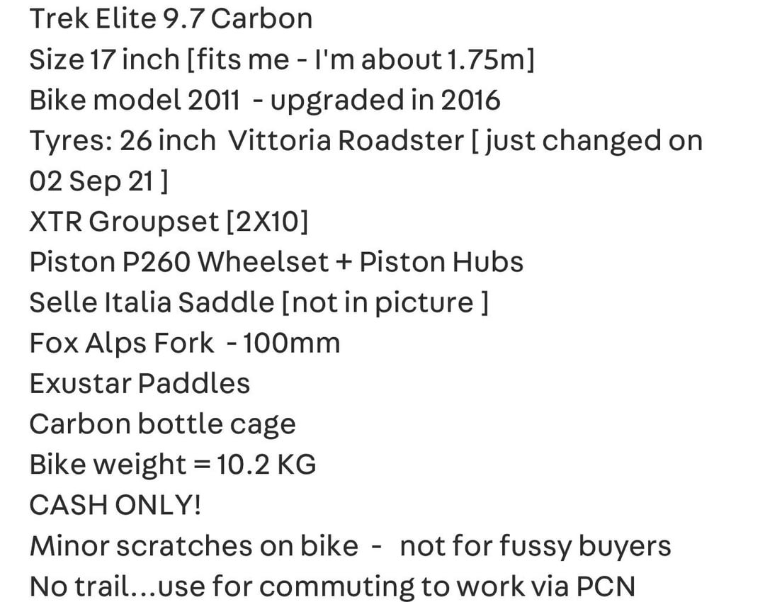 Facebook Twitter LinkedIn Pinterest Bluesky Threads Owner has upgraded to full XTR 10 speed. Full specs on second photo by DullCardiologist2000 Bicycle Bike Right for me Which bicycle Which bicycle is right for me Which bike Which bike is right for me
