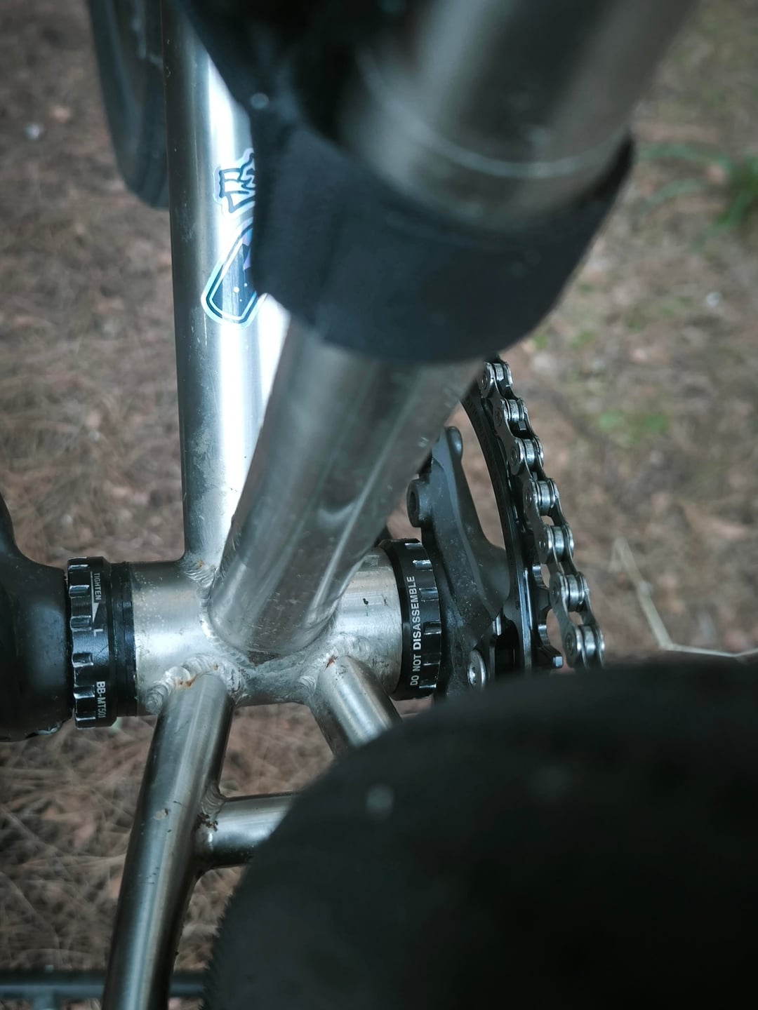 Die leichten Gänge hatten einen zu starken Schräglauf, so dass es ab dem 4. Gang auch ordentlich geklackert hat. zu dem Zeitpunkt war links und rechts jeweils ein Spacer da die Kurbel-Achse sonst zu lang wäre.