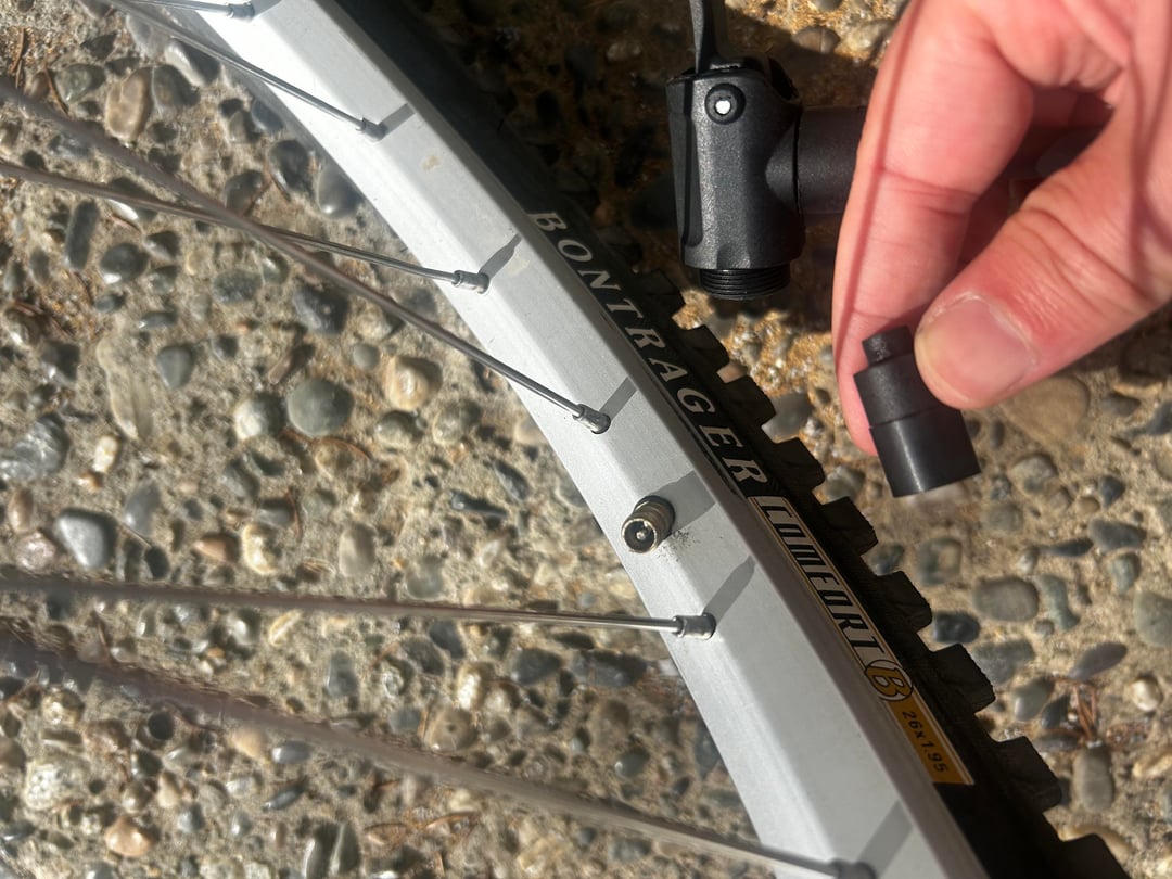 I am using an air attack pump. I assemble the two black pieces (pic 1) as shown and stick them in the mouth of the pump. Then I try to put the mouth (pic 2) over the bike valve, but it doesn’t fit very snug and I hear a slight hissing, also as soon as I take 3 pumps it flies off – usually with the two rubber pieces staying attached (pic 3).
