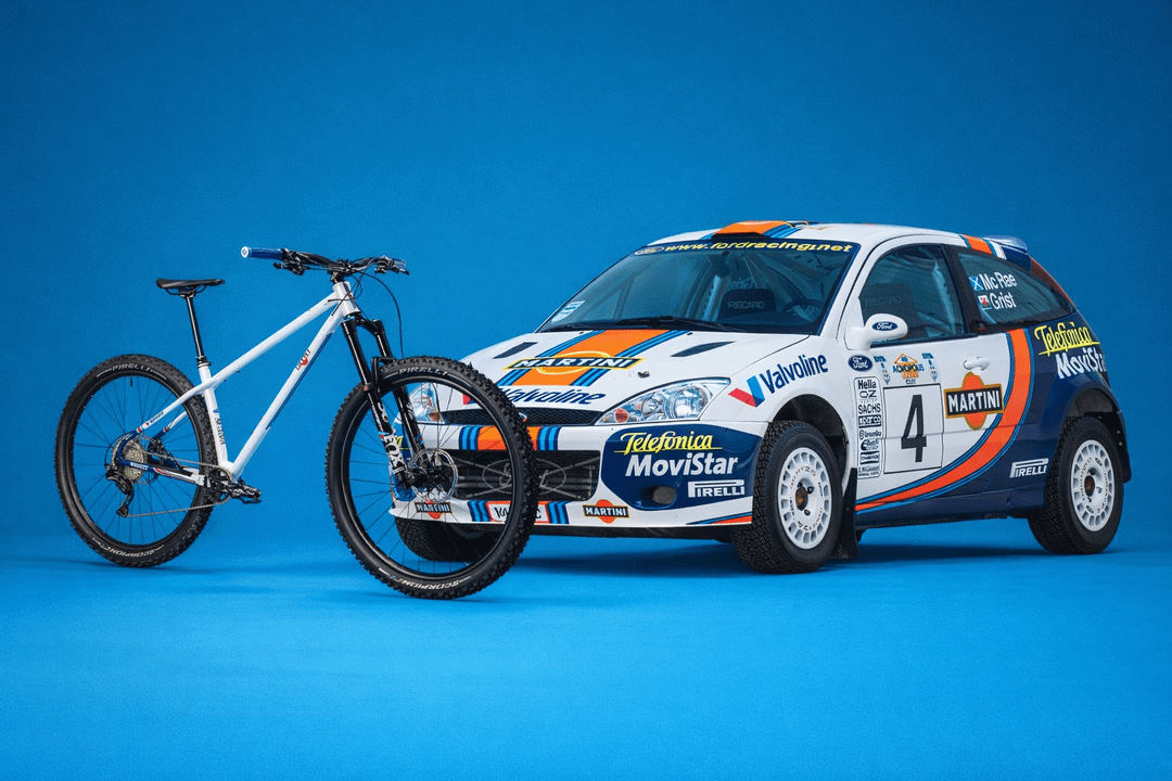 I've spent these wet and cold winter months working on a labour of love, it's a tribute to the great Colin McRae, in the form of a hardtail mountain bike. I took his 2001 Ford Focus WRC car as my inspiration, and with a little artistic licence.