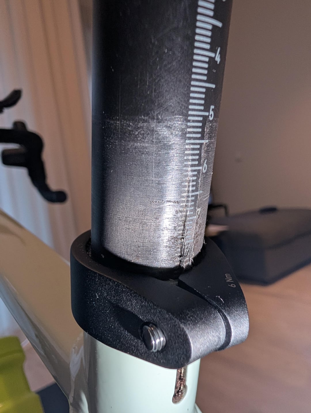 Also, it appears your seat collar clamp is way way over-torqued. Like, the two halves should not be touching each other.