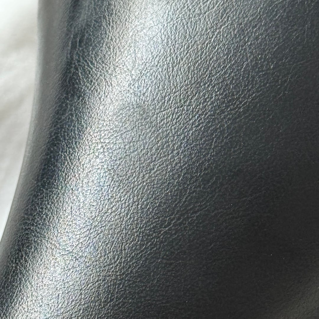 It’s leather. It’s a nice saddle. It’s obvious from the back of it.