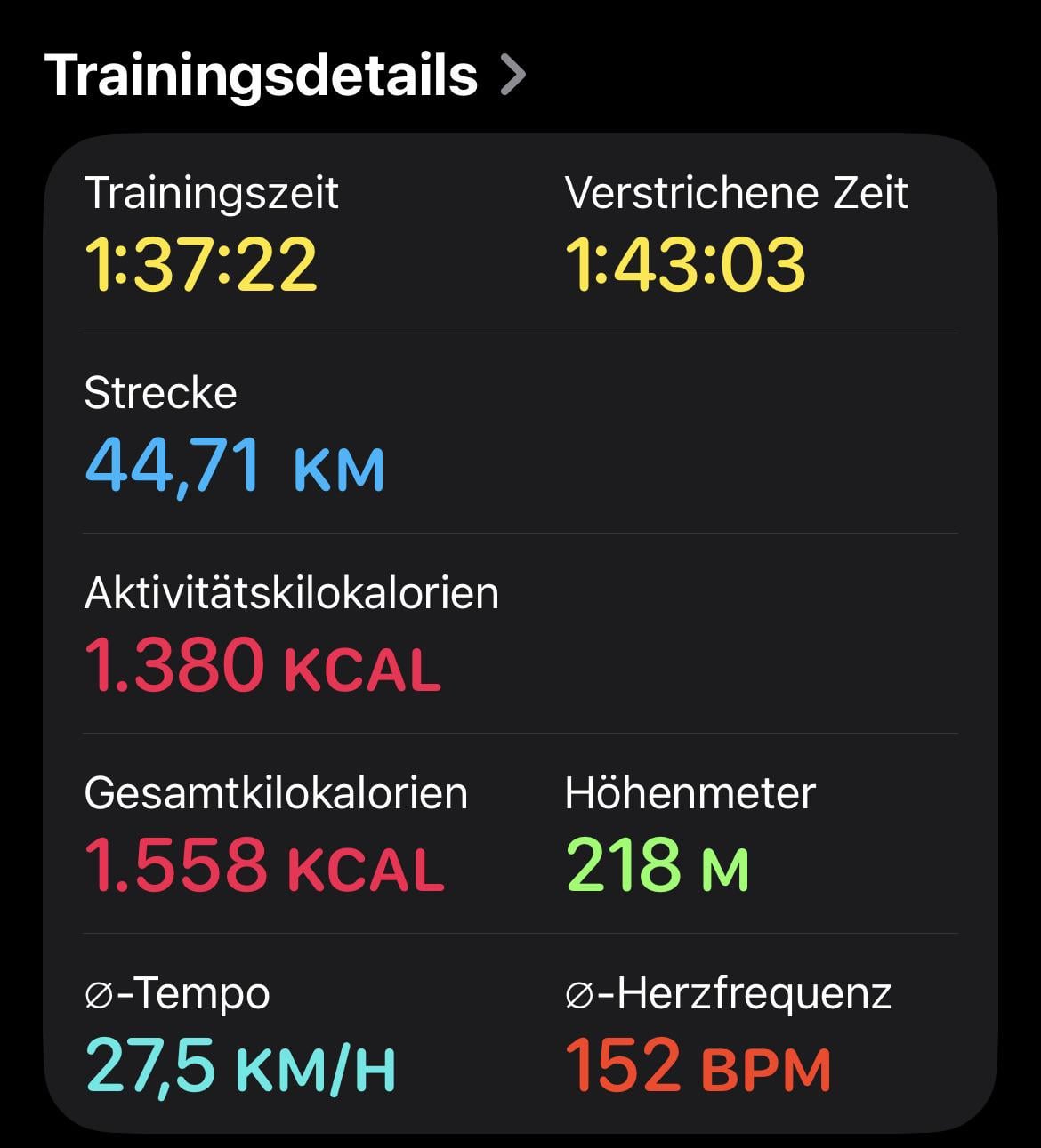 (Screenshot anbei von heutiger Fahrt, damit man mein Trainingsstand einordnen kann)
