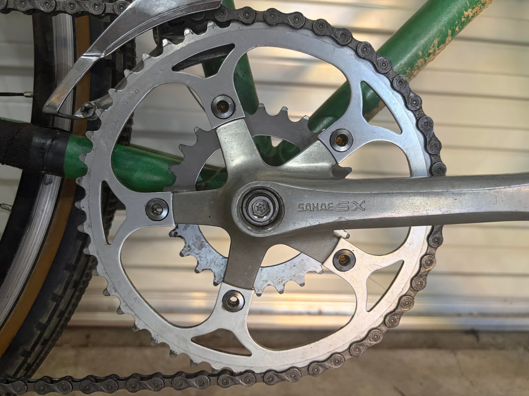 First is a Sakae SX with 48t big ring, 26t small ring with 9 speed friction.