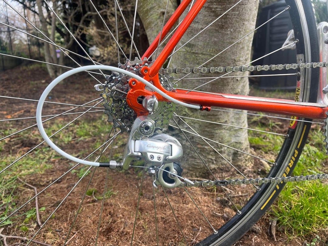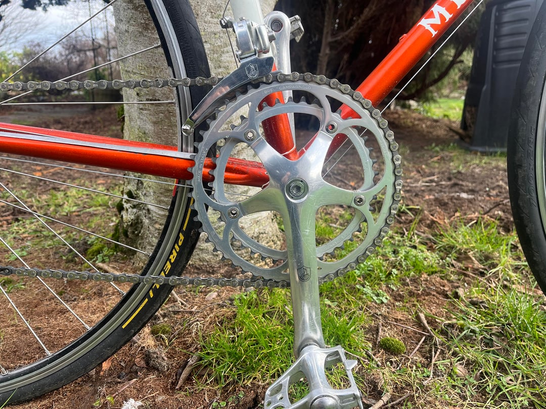 3. I still believe that C-Record crankset is the most beautiful ever made. And when you look down while riding and the light reflects in the facets of the spider… bliss. Cool bike!