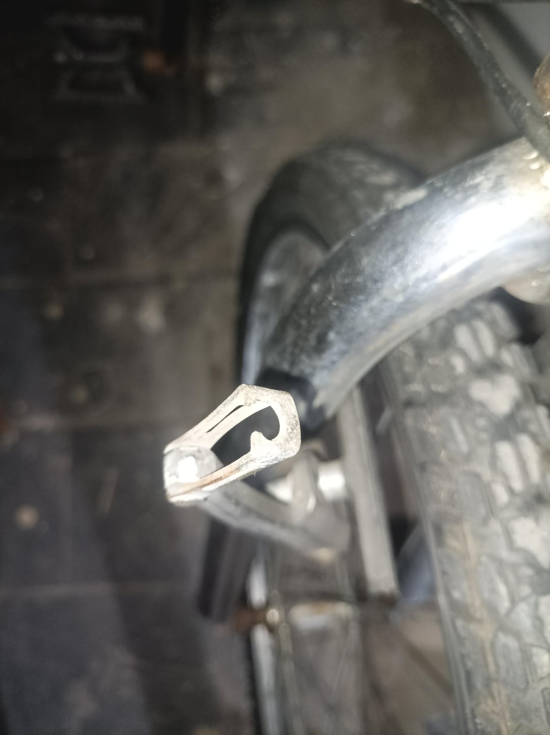 In some crashes the little swing arm gets mangled but this one looks OK. Test the brakes before you head into traffic.