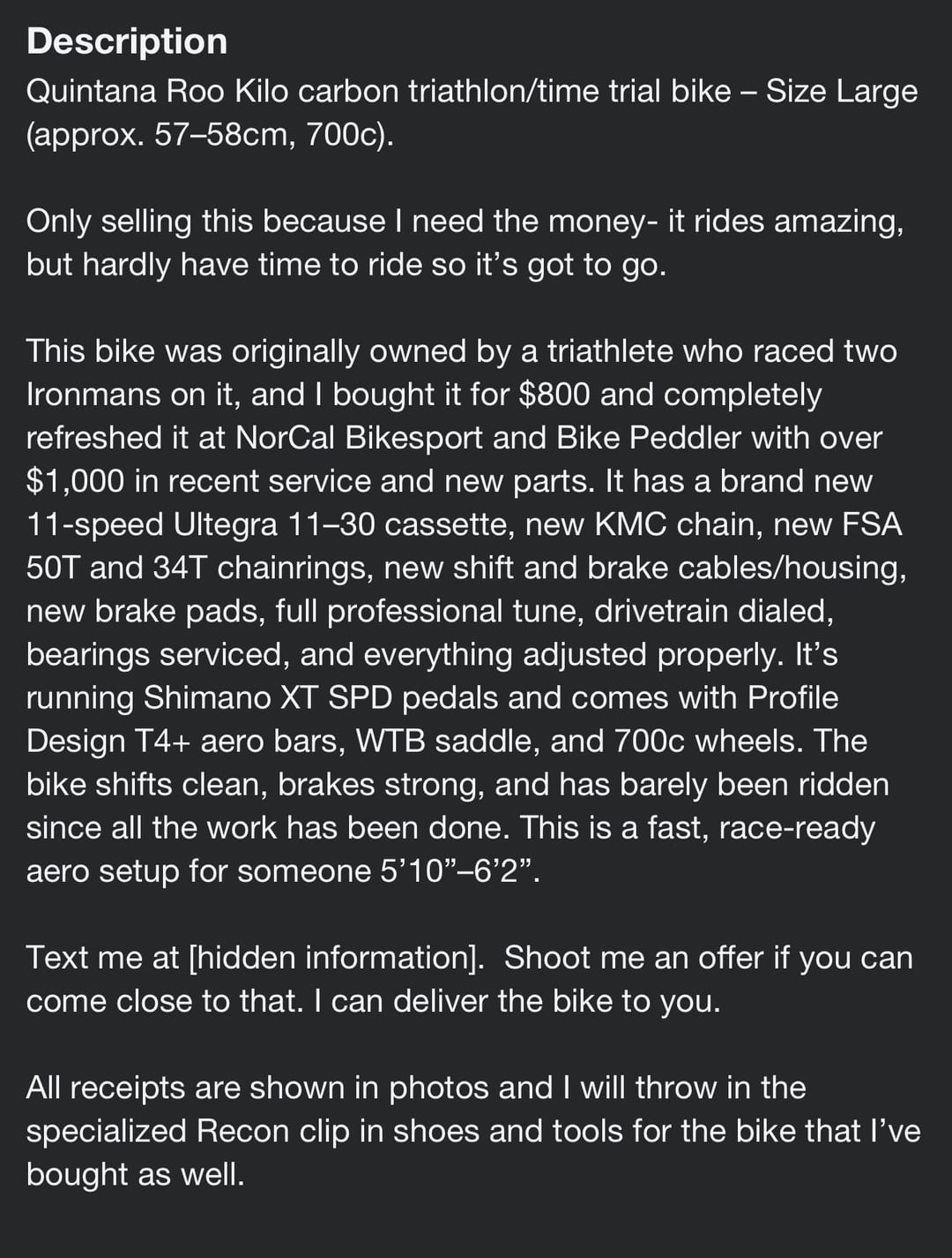 Howdy yall! Looking to grab my first tri bike for a pretty aggressive race season. Both of these look to fit me well and about a 200$ price difference (cervelo cheaper)(ignore the marketplace listed price) any thoughts on which would be a better choice? The detailed fb list of components is for the QR, no such info for the cervelo. Thanks!