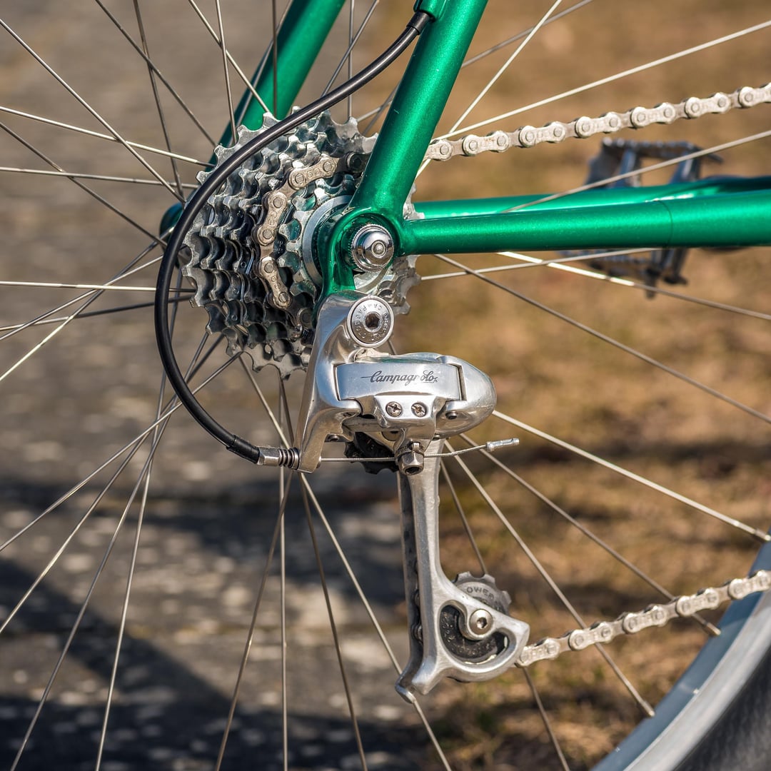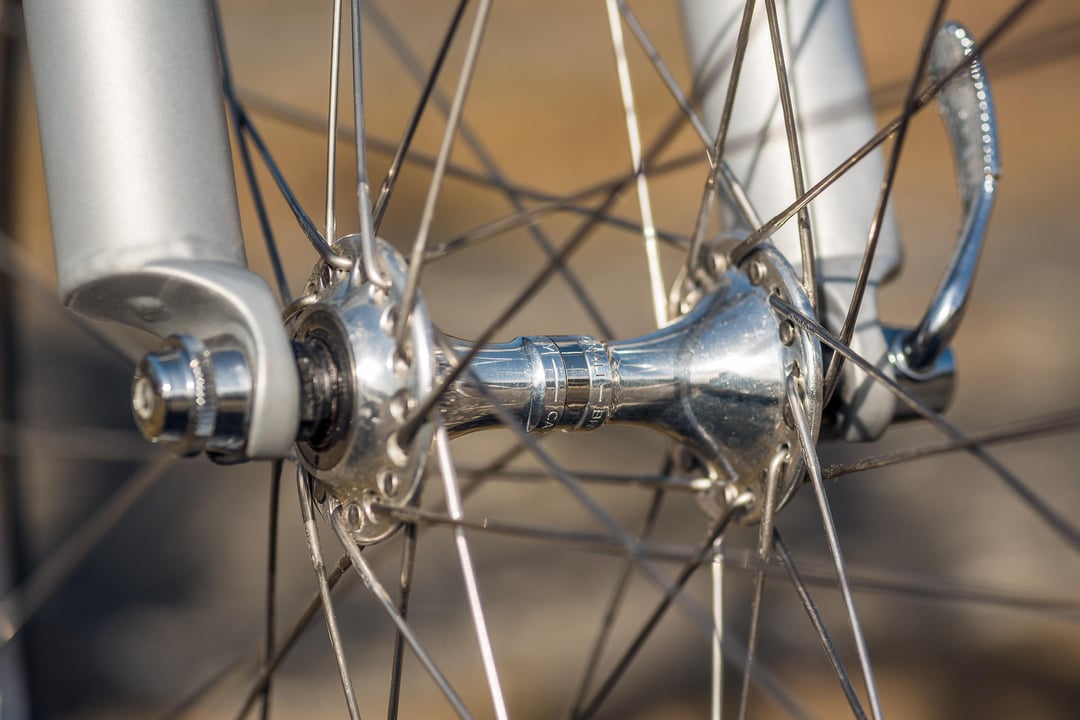 This build started with the Pulcro frame and forks. I wanted to go with parts from Europe only as a challenge. The frame is from 2003 but most of the parts are mid/late 90s. And lots of shiny chrome.