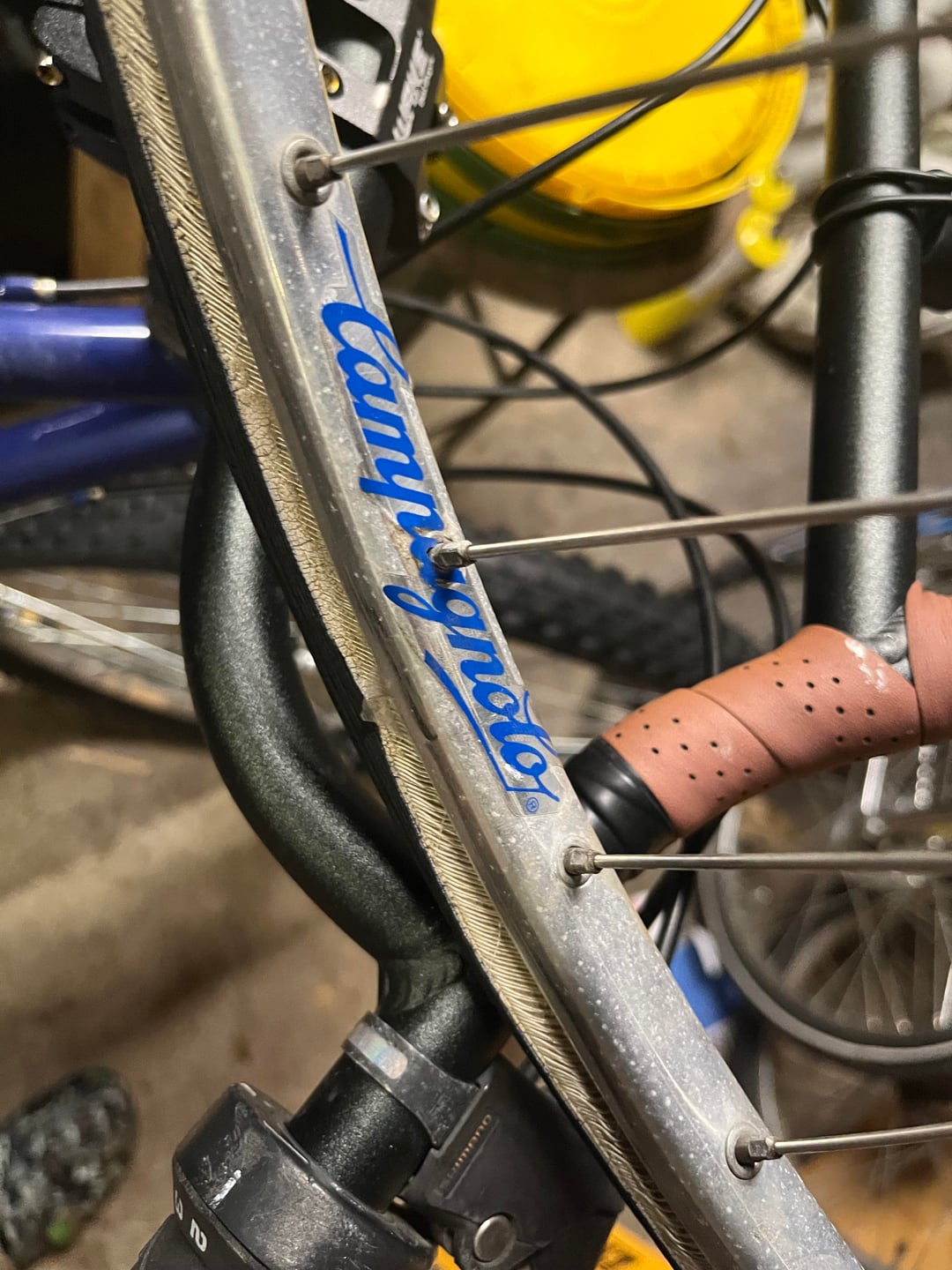 I know someone could have just drilled them out too but the bike I am pulling them off was a weird custom Belgium bike and it was suppose to be set like a cheap Schwinn paramount “clone” and had the worst at home printer sticker/decals but these look like legit campy stickers. I’m just trying to get a maybe more educated guess/opinion to see if they are worth playing with or should I just hold onto them and use them the next time I just need another wheel? Thanks for the help