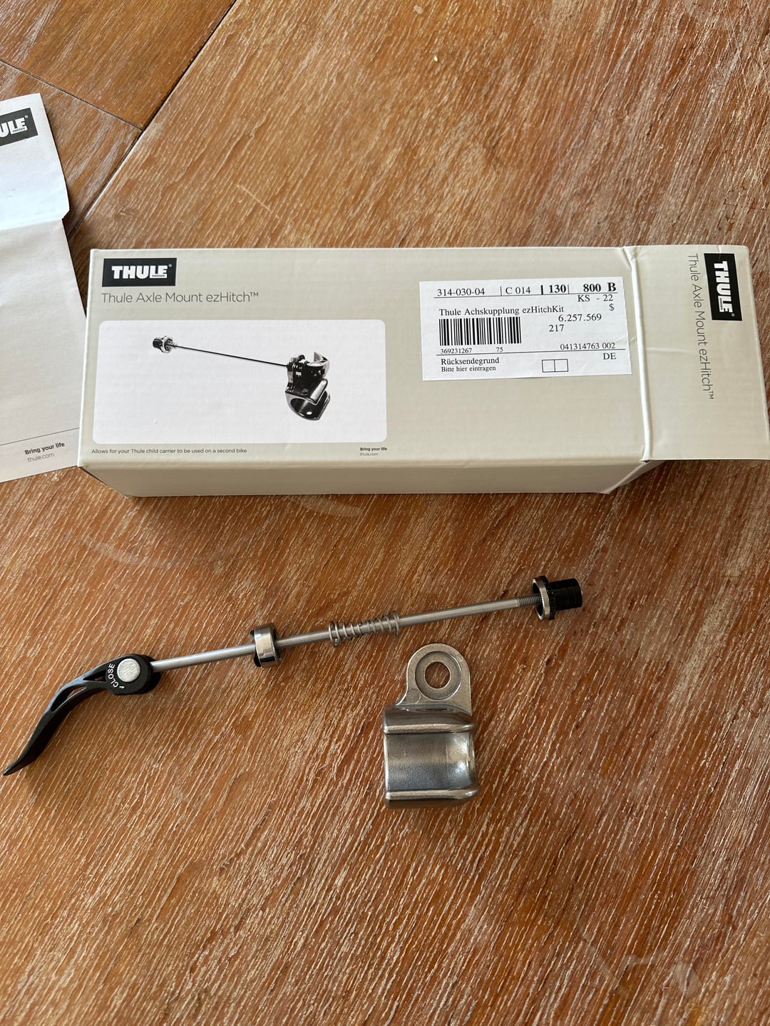 Wir haben einen gebrauchten Thule-Fahrradanhänger gekauft, aber leider fehlt die Kupplung. Deshalb habe ich diese Achskupplung gekauft (siehe Bilder).