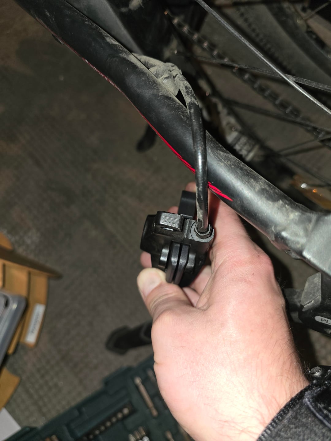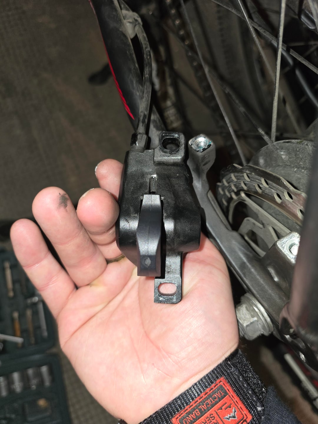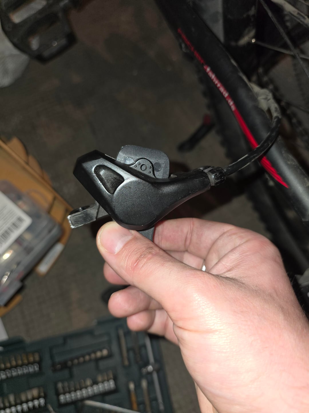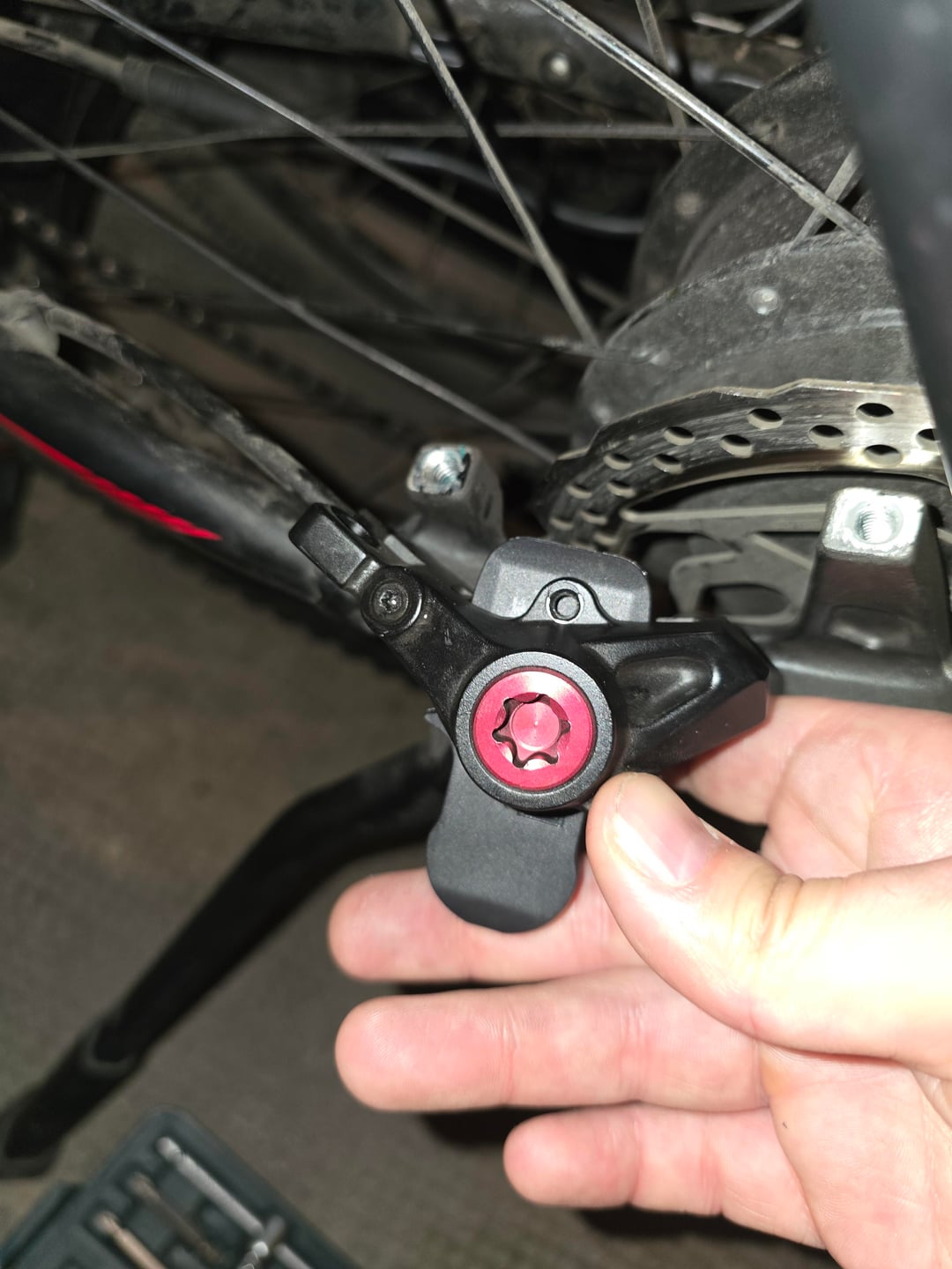 Das schaut eher nach Clarks M2, als nach Shimano aus. Die schwarze Schraube links von diesem großen roten Ding. Schau mal Videos bei Youtube.