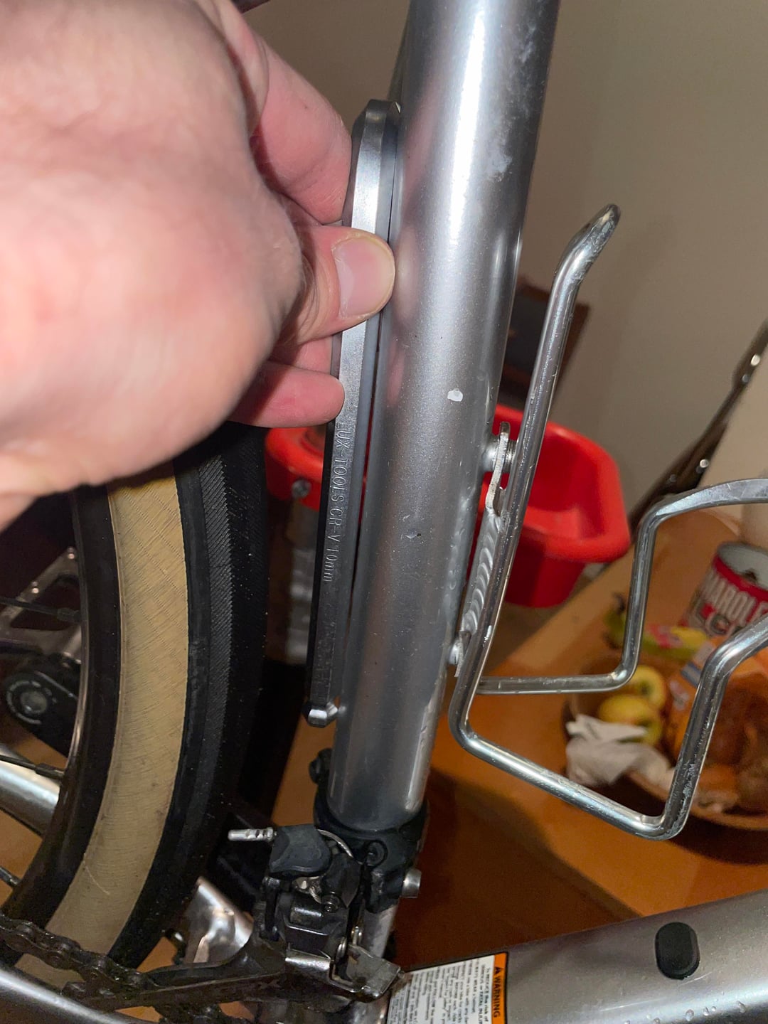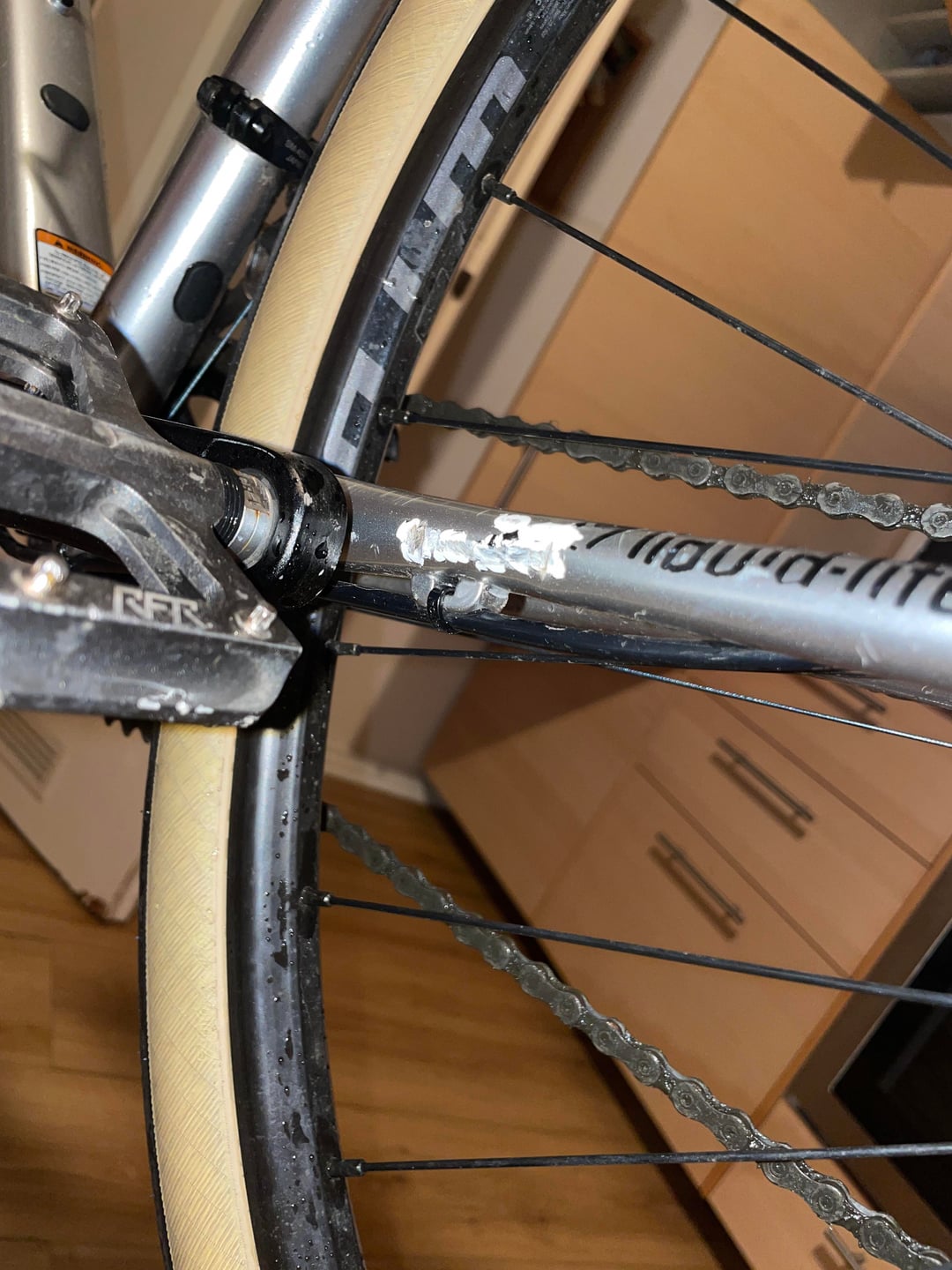 Als ich vorhin das Fahrrad abgeholt habe, fiel mir auf, dass die Kette rausgesprungen war und das Hinterrad stark eiert. Bei genauerer Ansicht zuhause ist mir auch aufgefallen, dass der Rahmen wie auch der Lenker ebenfalls was abbekommen haben. Mir kommt es so vor, als ob das Sitzrohr ebenfalls verzogen ist.