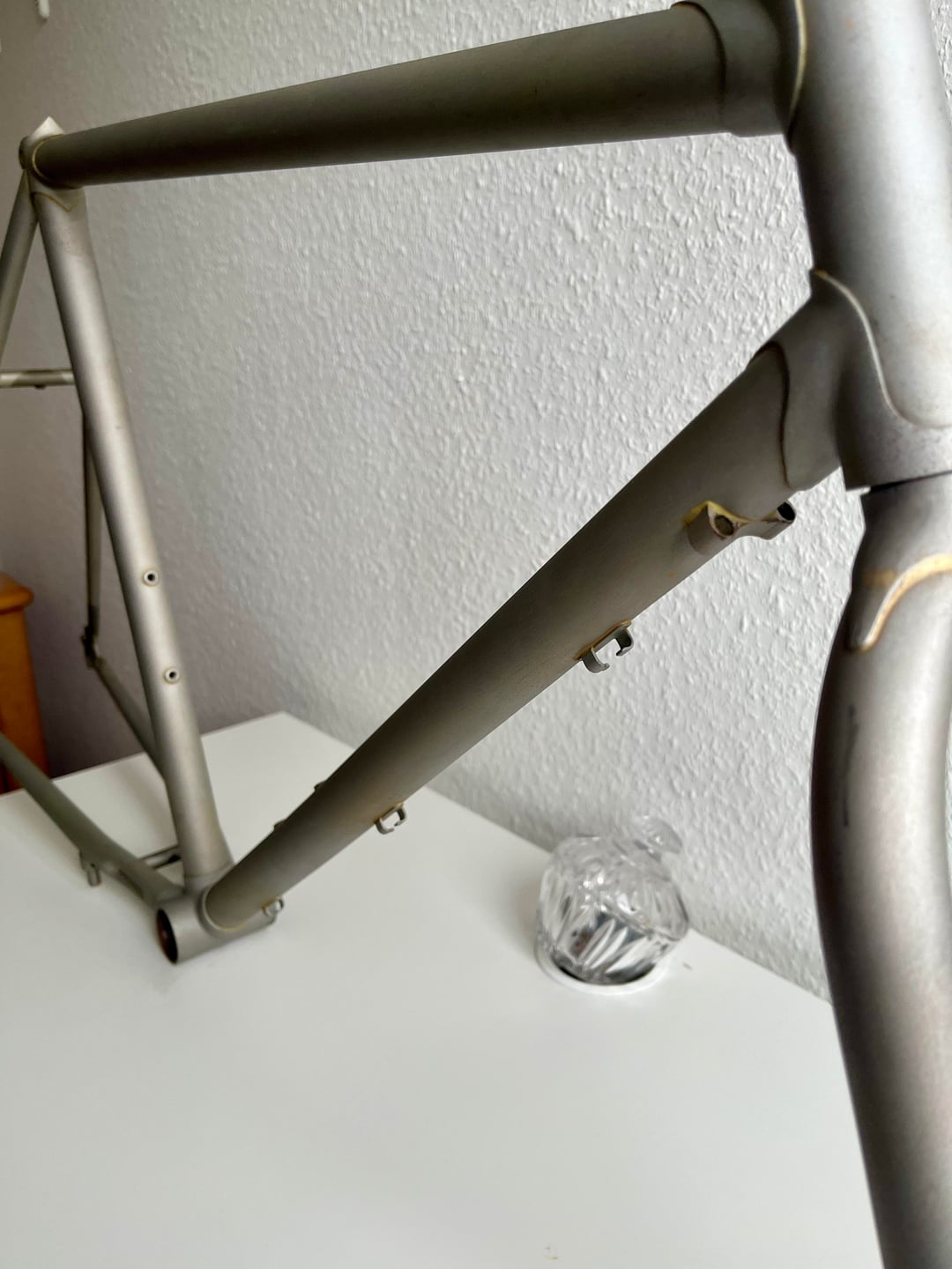 Unfortunately, there are no serial numbers anywhere on the frame. The only marking I can find is a single “6” stamped on the bottom bracket shell. There are also no engravings or markings on the dropouts.