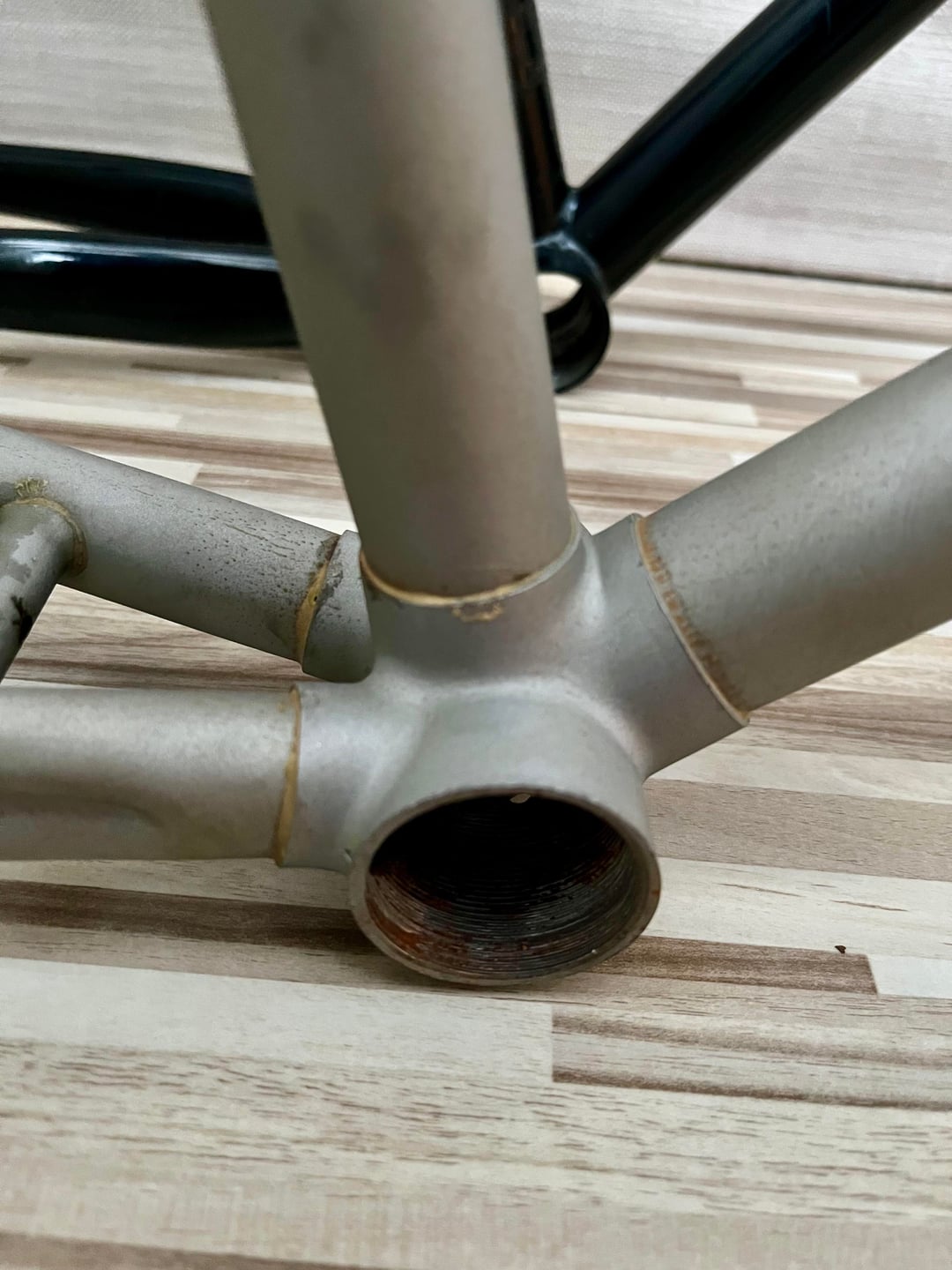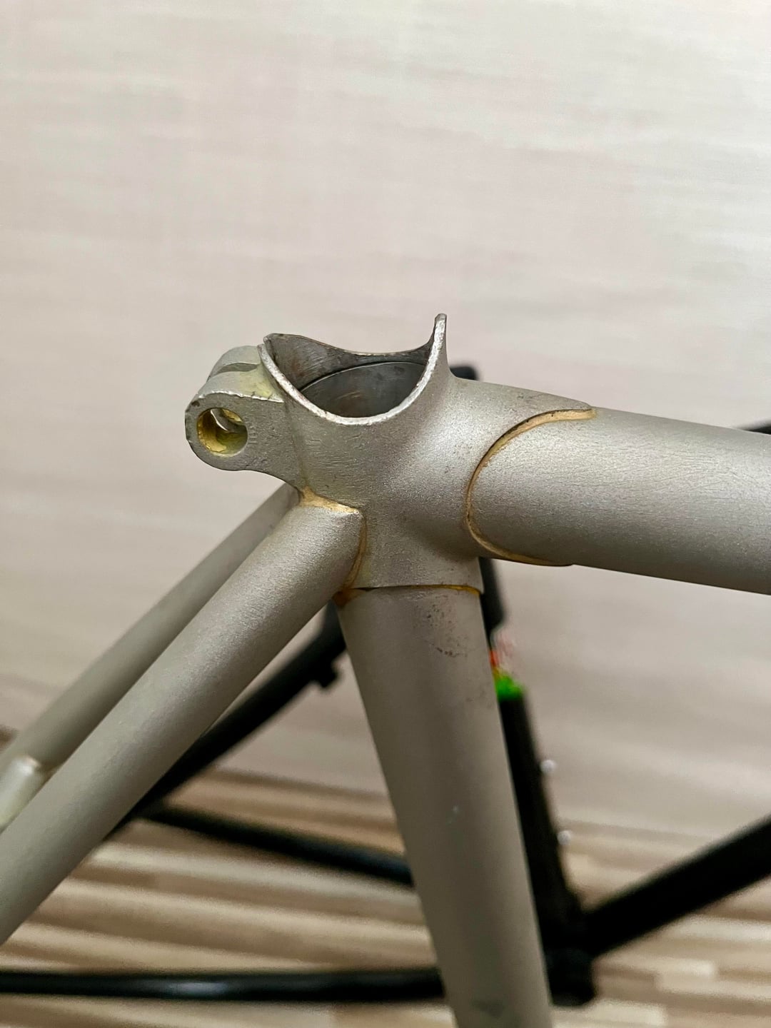 Based on the U-brake mounts, I believe the frame dates from around 1988–1989. I originally bought it as a Panasonic, but after working on it for a while I noticed that it actually has an Italian threaded bottom bracket, which made me question whether it’s really a Panasonic frame.