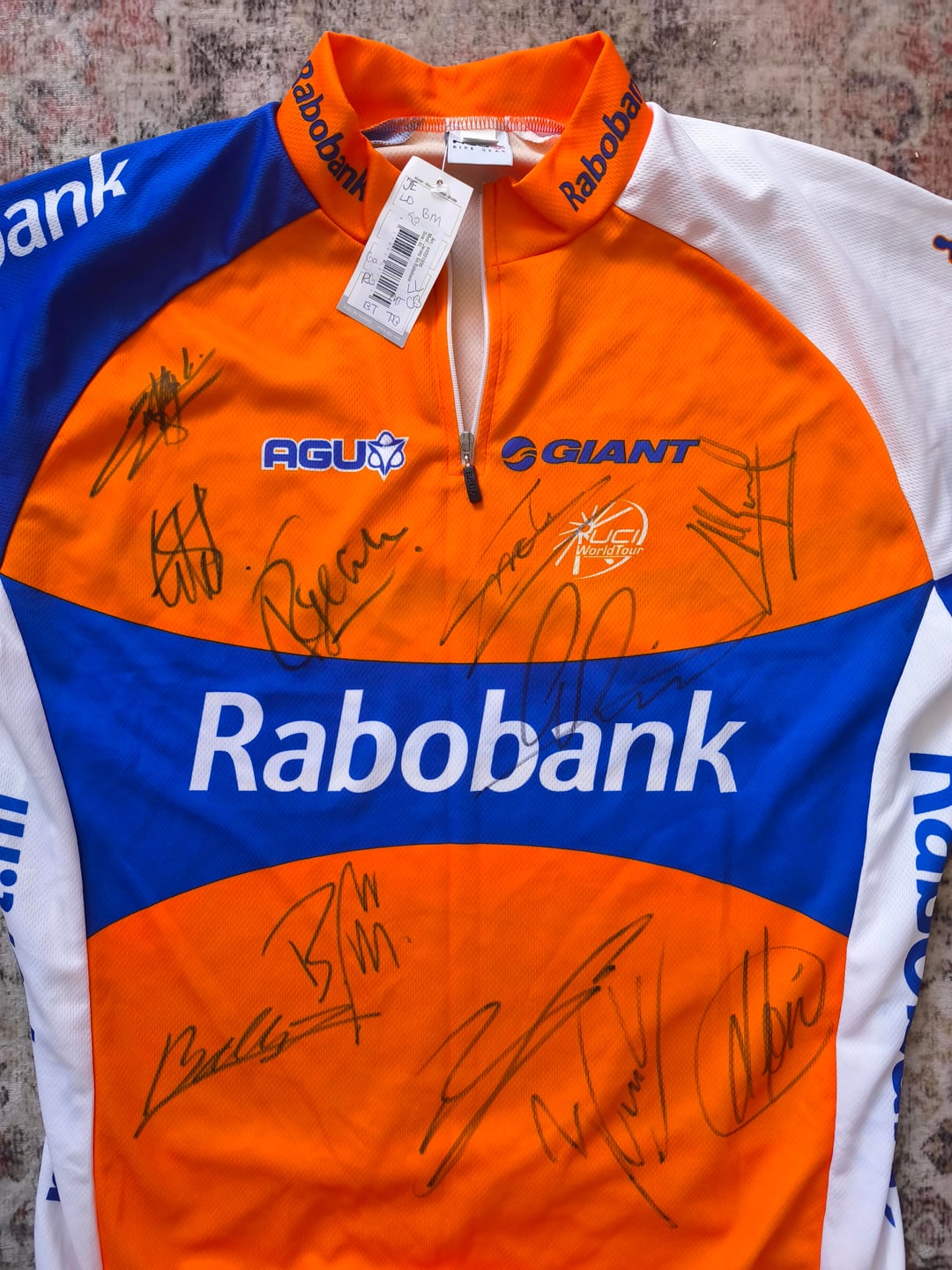I just acquired this official 2010 Rabobank cycling team jersey (made by AGU). It is brand new with original tags.