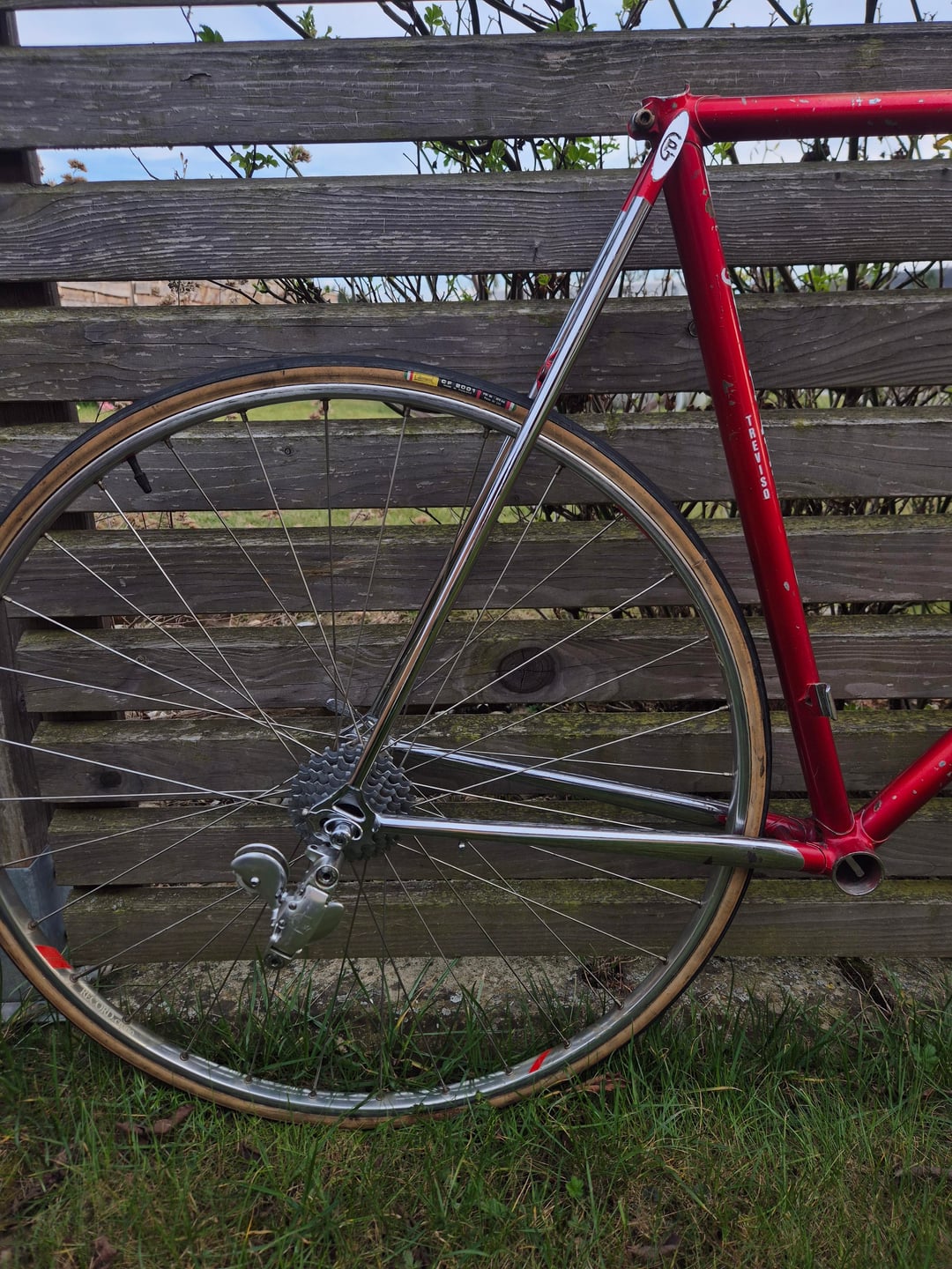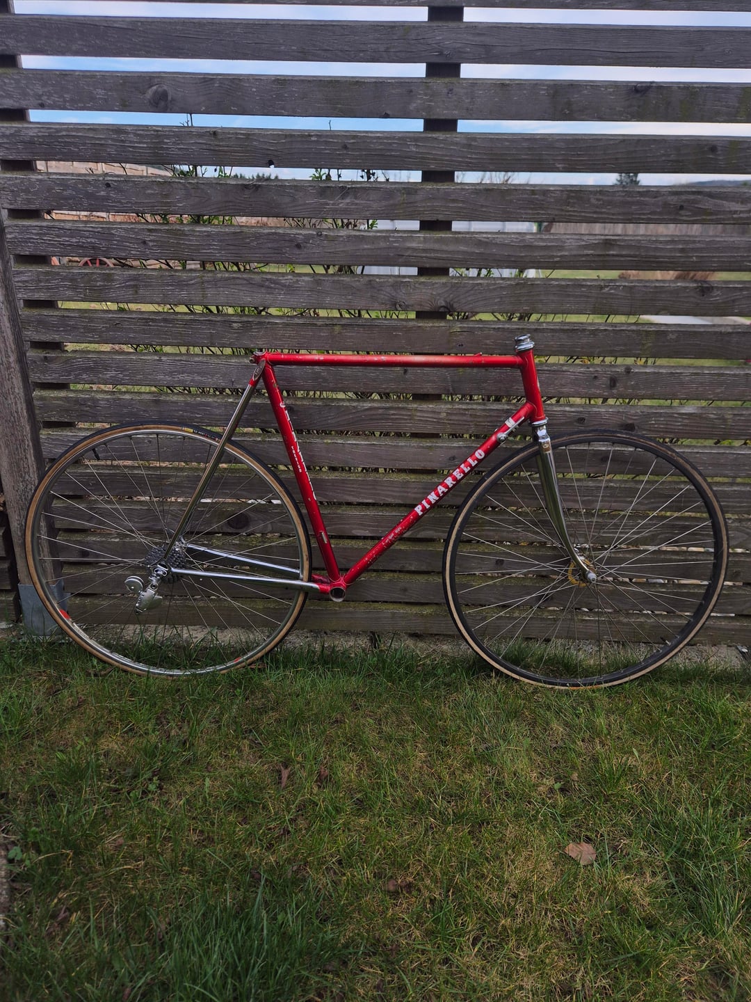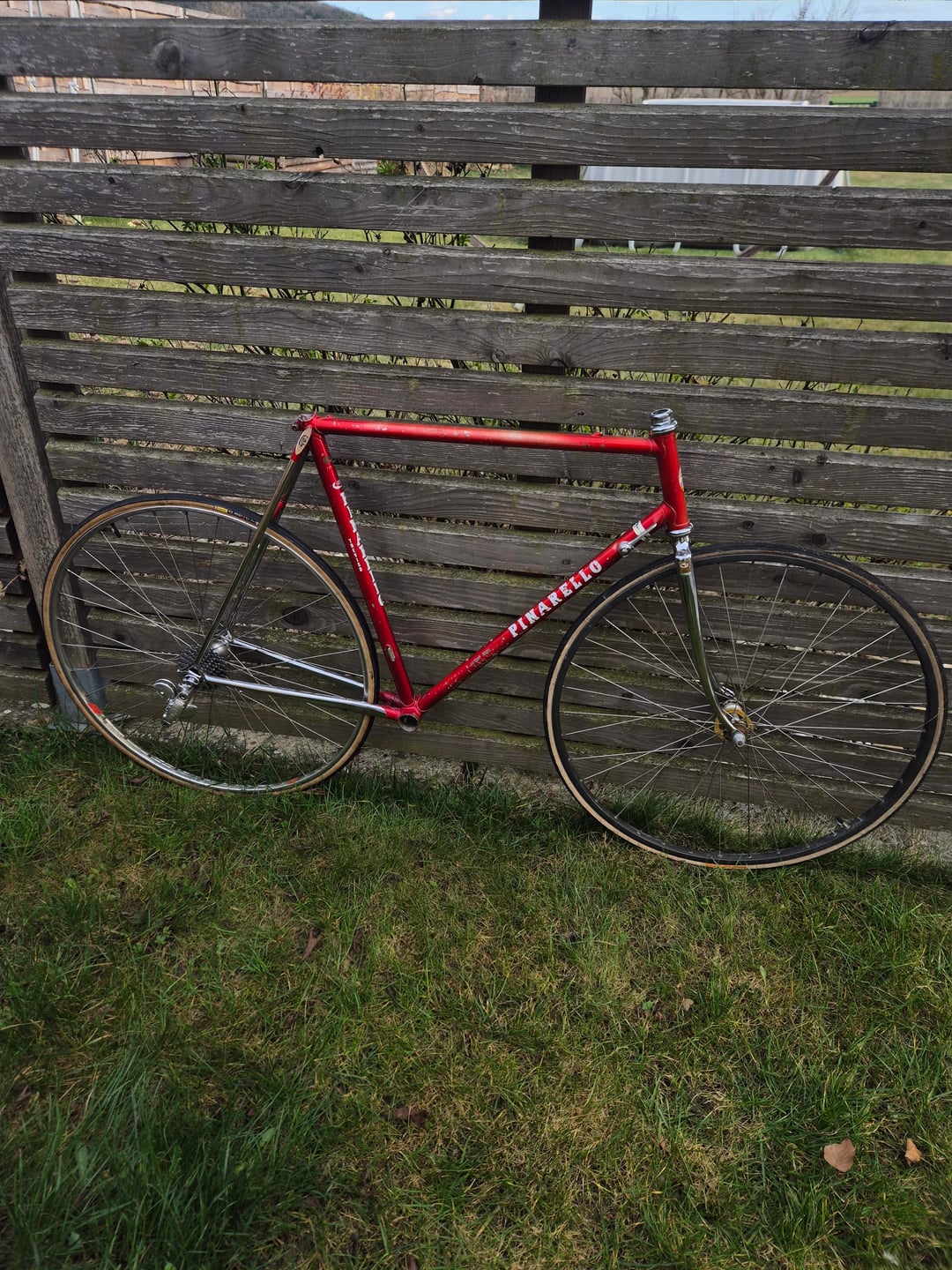 This is my new-to-me Pinarello Treviso. It's got some bad rust spots, but nothing that makes it undrivable. Also, I'm looking for some panto parts, such as a stem, seatpost, chainring, etc. So if anyone has some for sale that they would also be willing to ship to Europe, please let me know.