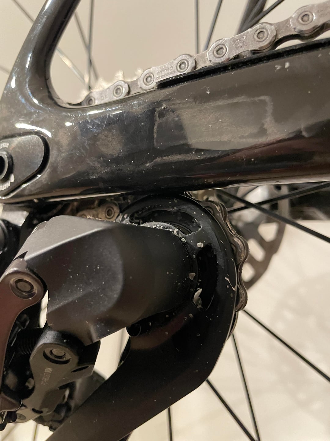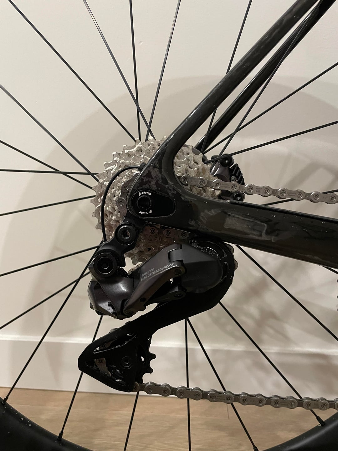 New bike build. Is my chain too long or something? Did the standard big sprocket-big chainring + 1 pin chain sizing. I’ve adjusted the B-tension with the Shimano paper guide and adjusted the H / L limit screws but still can’t fix this. Why is it holding such an aggresive upward angle?