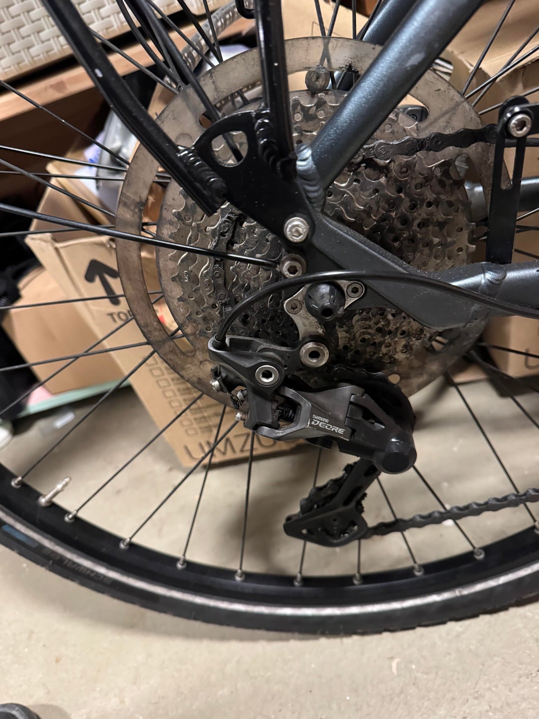 Aktuell springt der letzte Gang unter Last und man muss 2x herunter schalten, bis ein Gangwechsel stattfindet und der erste Gang klingt nicht ganz sauber. So weit kenne ich das von meinem Cube Hardtail mit der Deore 10 und hoffe das bisschen Draht reicht noch zum nachstellen.