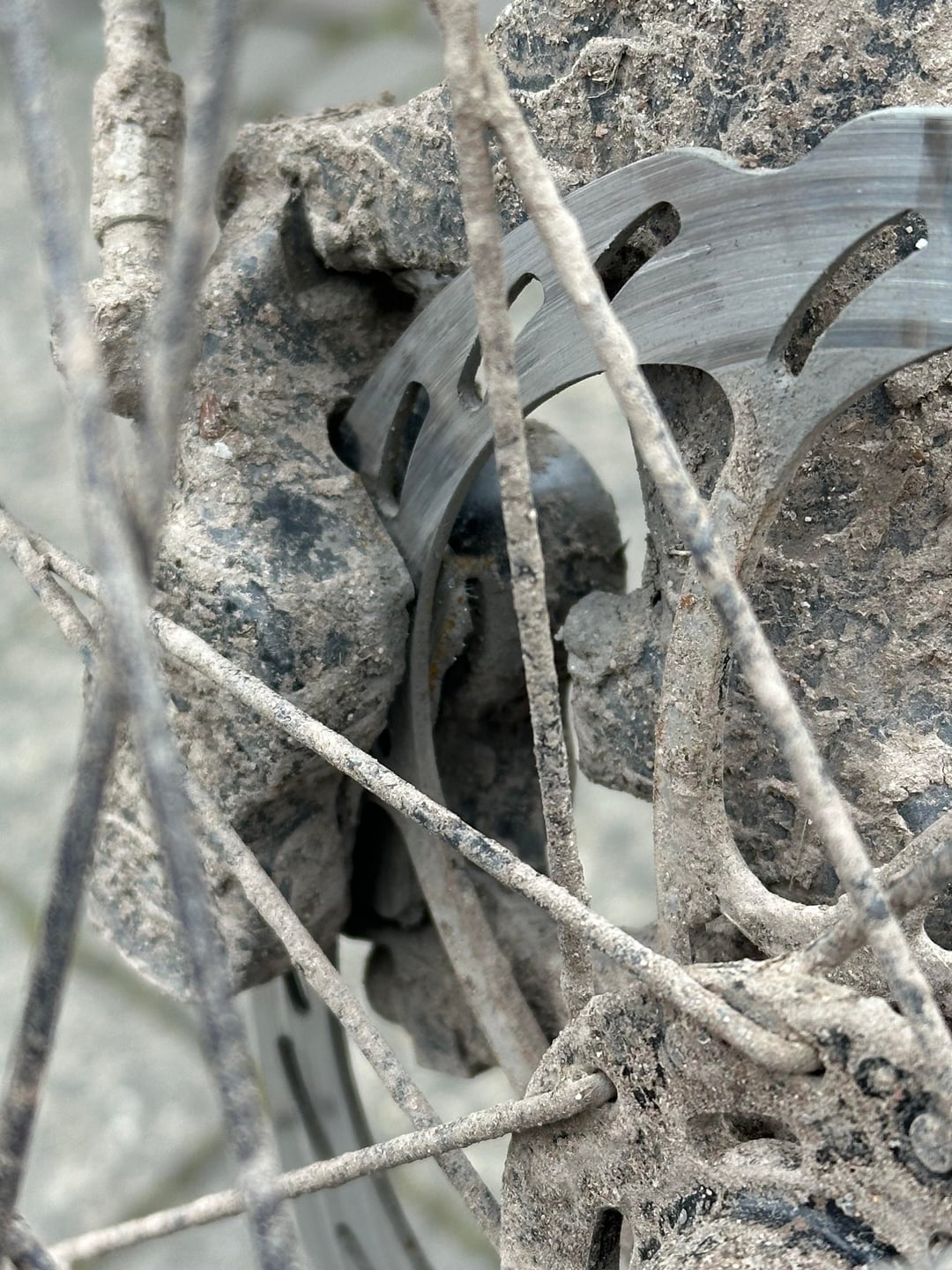 > … dass sich einer der Bremsbeläge gelöst hatte und heraushing.