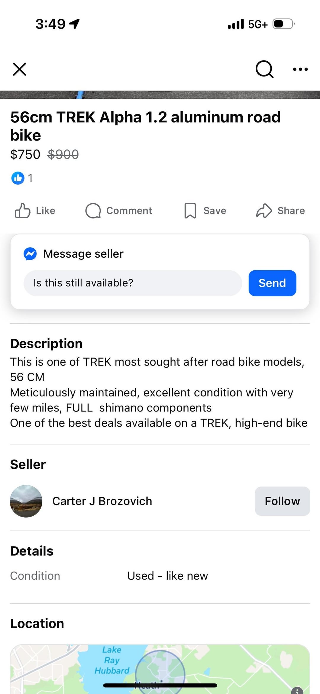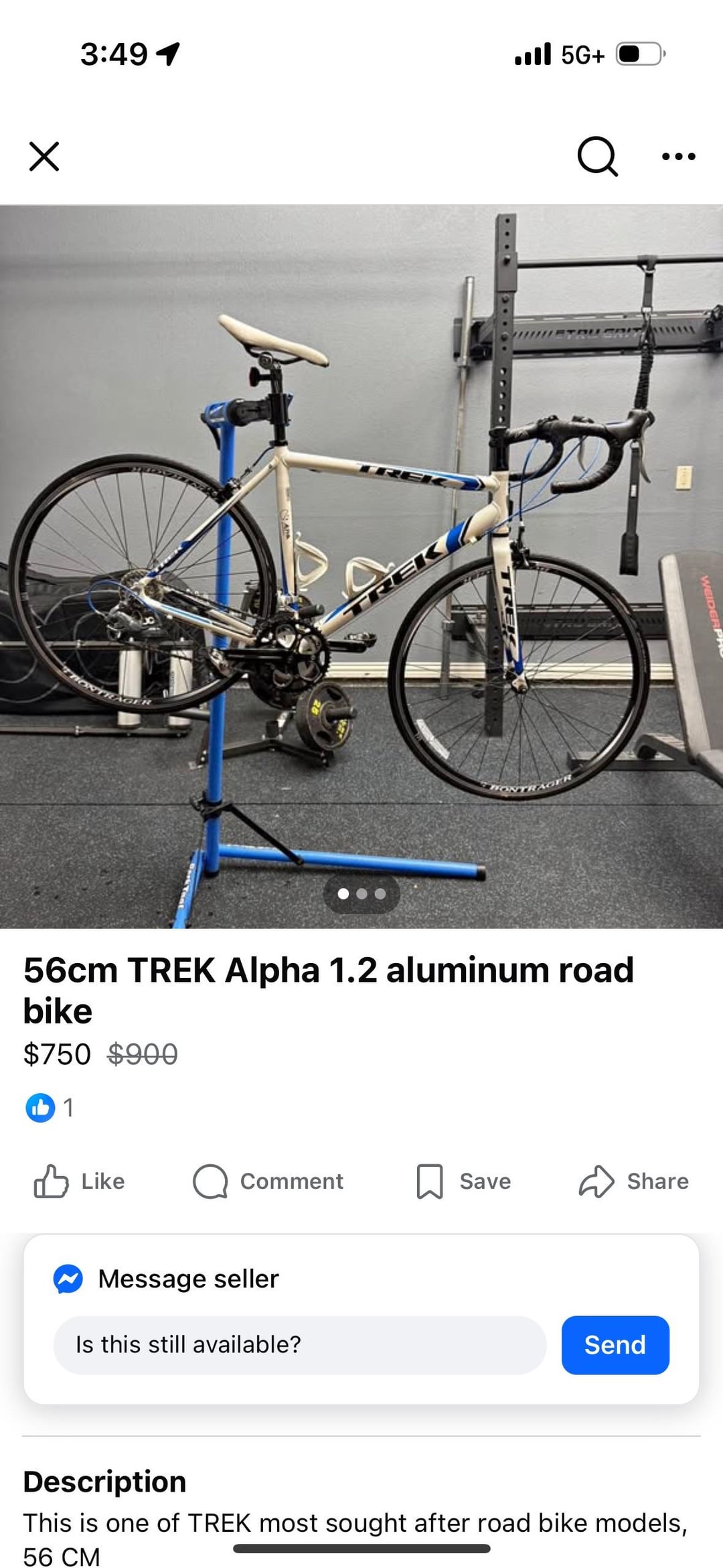 1. That bike probably retailed for ~$650 ~15 years ago. That is a 300-400 bike. There is not much of anything that makes a Trek Alpha 1.2 sought after. It is the Toyota Corolla of road bikes. It is a fine bike. However it does not have anything done to it that would increase the value such as a power meter or better wheels.