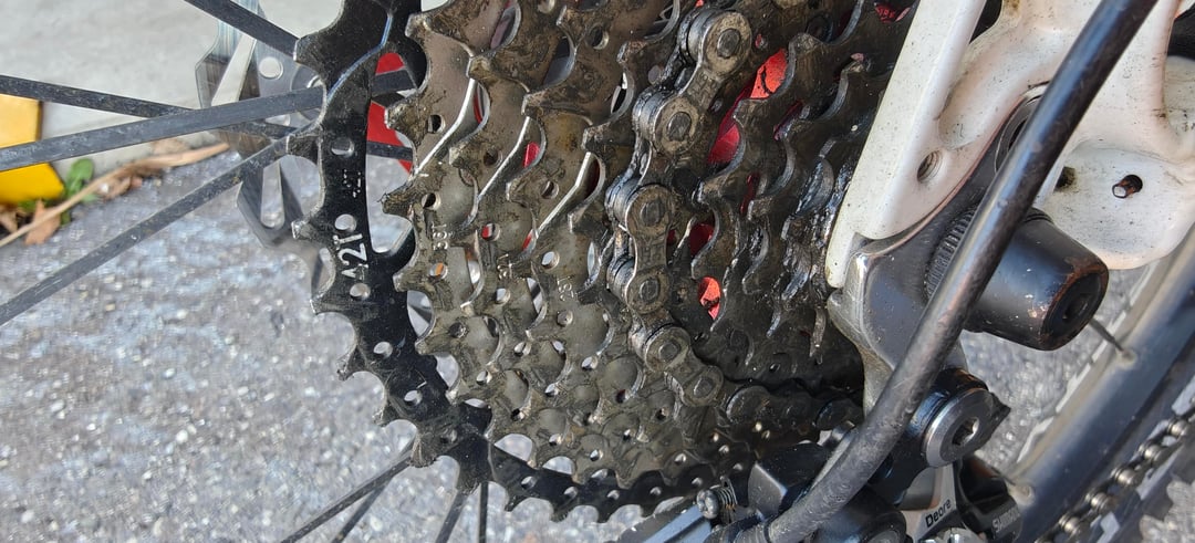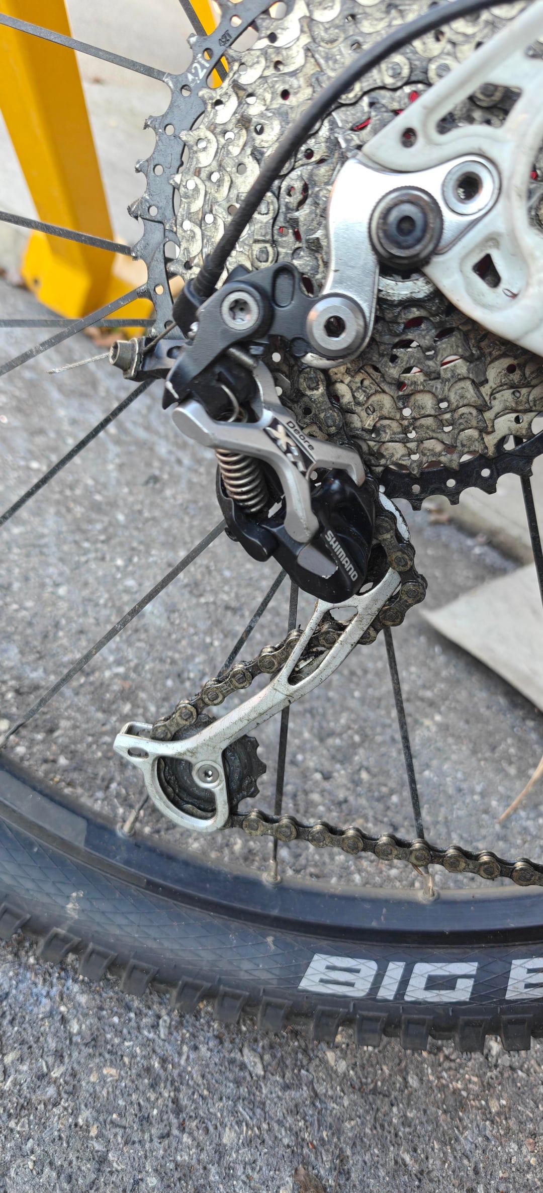 Meine Vermutung als absoluter leihe ist das eine zu große Kassette auf dem Hinterad ist mit nur 9 Ritzeln anstatt 10 wie für die Schaltung vor gesehen. ( Ist eine Shimano Deore SL M780 B ).