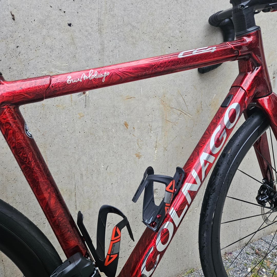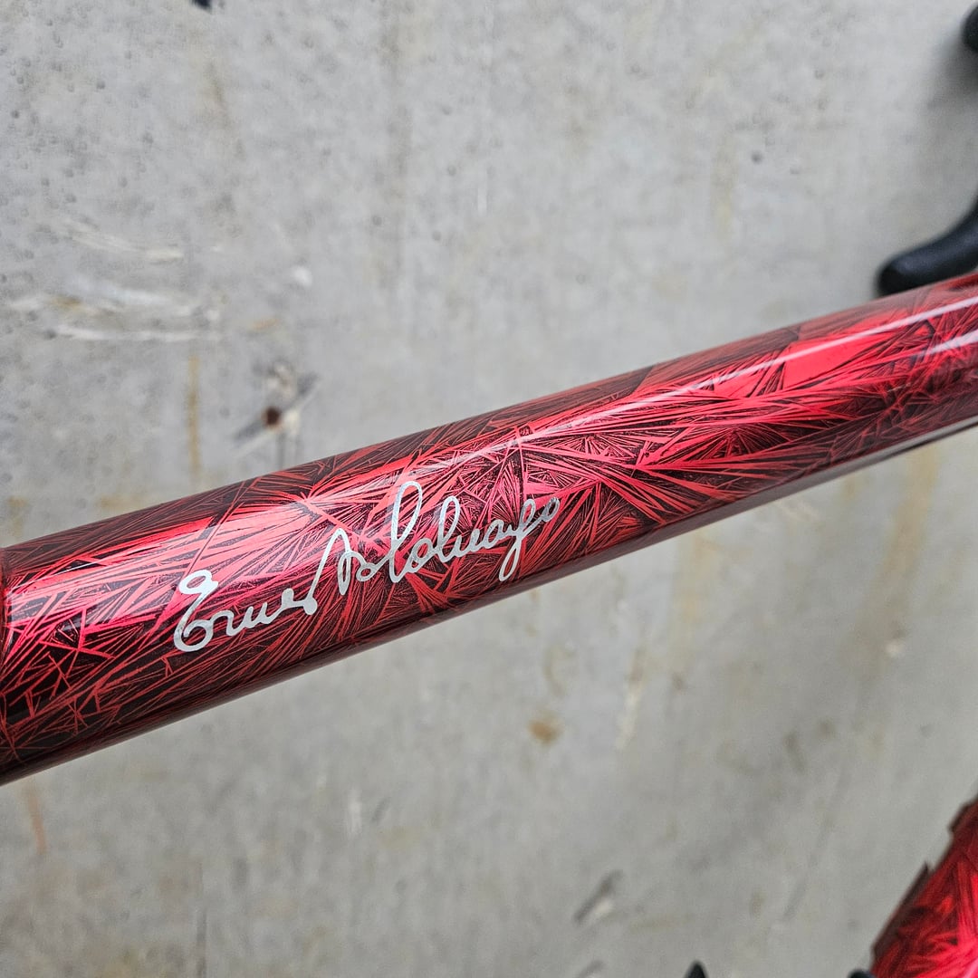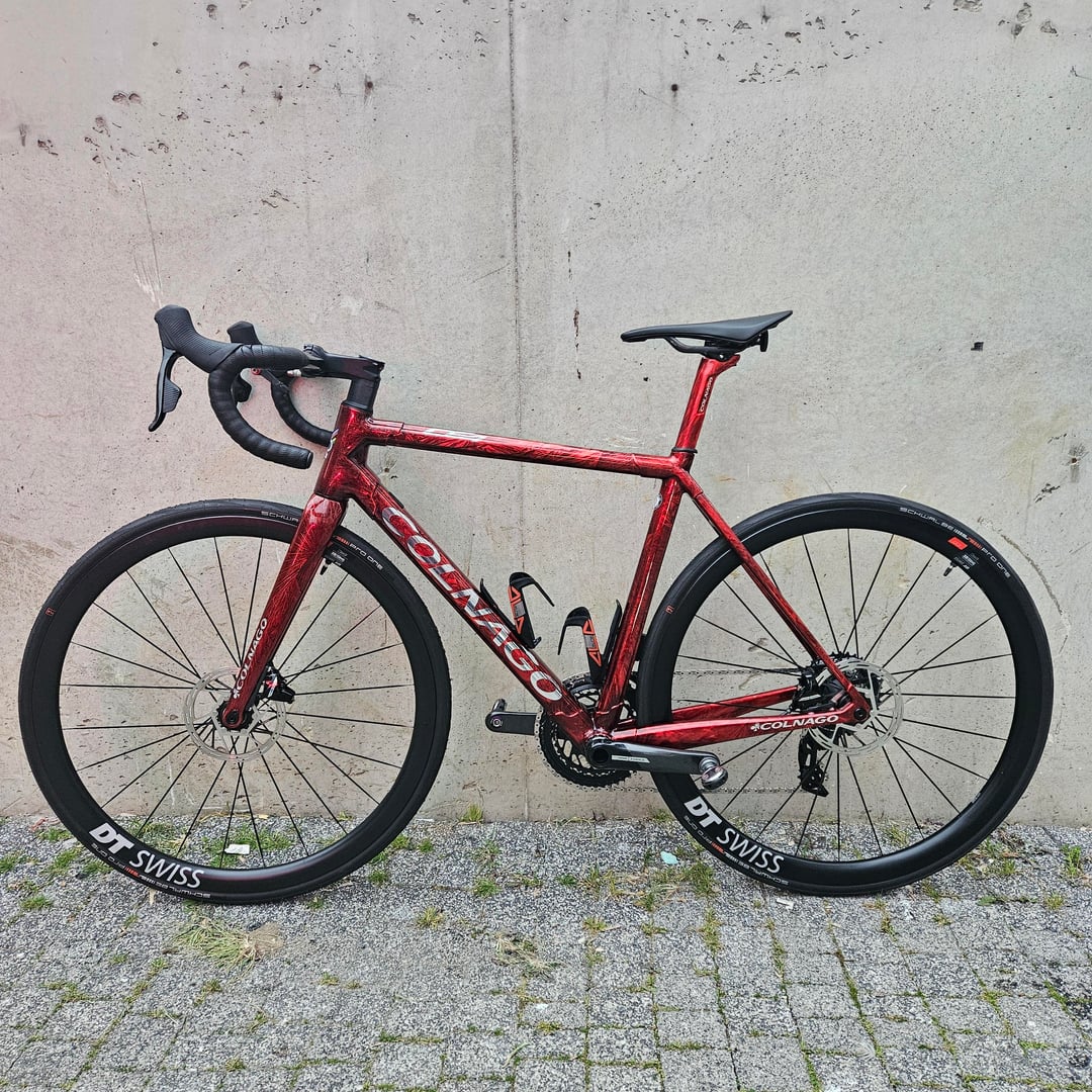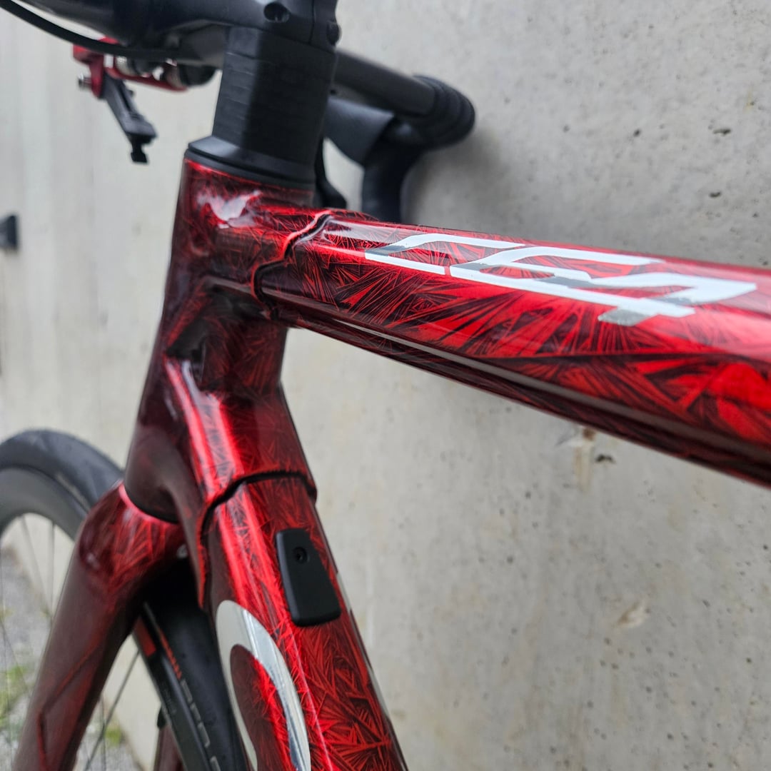 Ice crack pattern glossy red colour scheme, Sram Rival AXS E1 groupset, DT ERC 1100 wheels 35 mm profile. Sleek and cool! by fadike Bicycle Bike Bike Porn Bikeporn