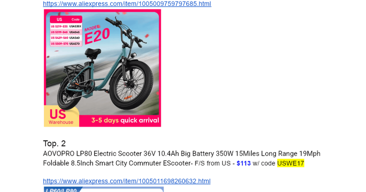 I’ve been heavily in the market for an e-bike lately. To keep my sanity, I started throwing all the current sales, discounts, and promo codes I could find into a Google Doc to compare specs and prices.