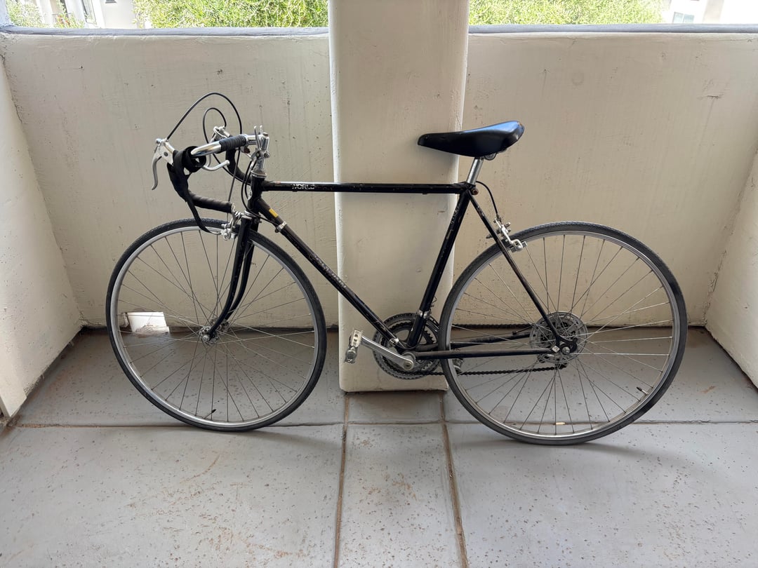 The bike that got me through college and I have been reunited after being passed around a few times (the bike not me, duh). I believe it’s a 80 something Schwinn World Sport. I had plans of slowly bringing it back to life, but due to the cost of parts (original or upgrades, I have no preference) I am starting to wonder if it would be worth it. It has a ton of emotional value to me and would rather keep it, but it does need everything.