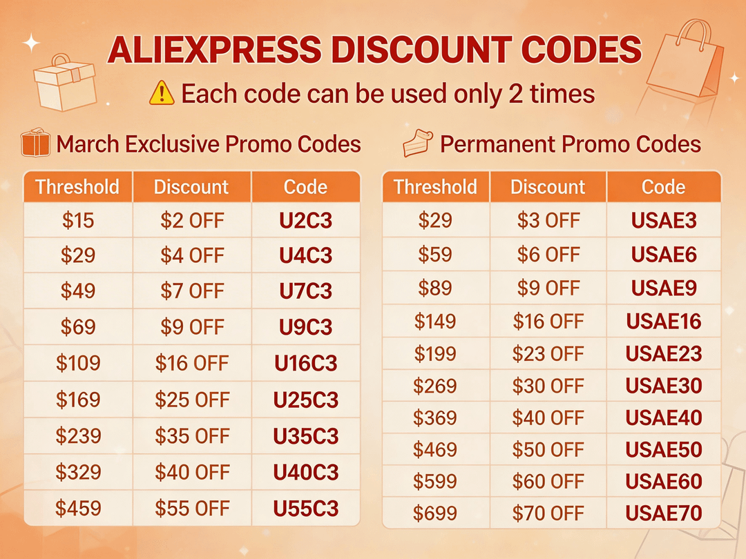 🌍AliExpress March 2026 Global Promo Discount Codes in USD: